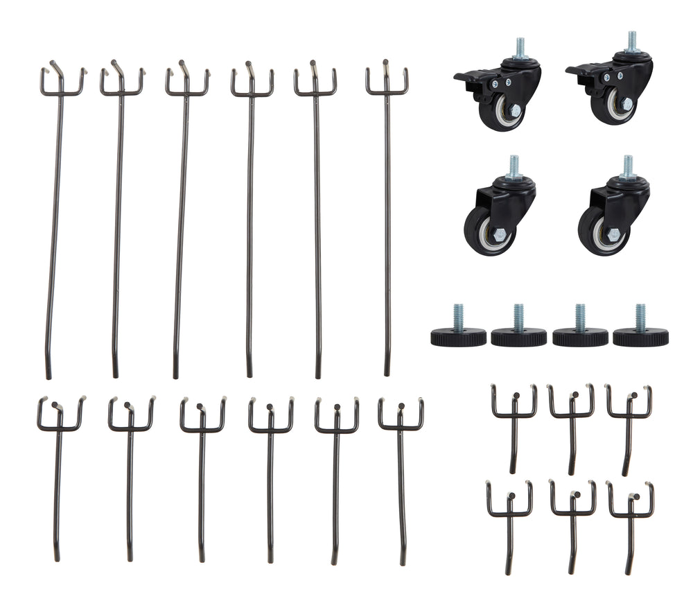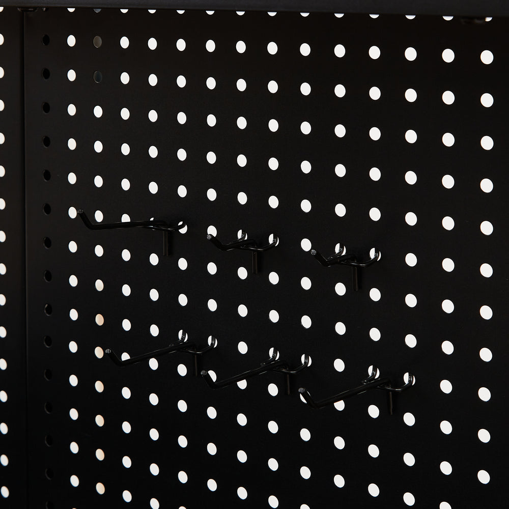 - Workshop organization: Keep your tools and supplies organized and within reach with the included pegboard, storage shelf and 18 hooks. This workbench offers plenty of storage options to help you maintain a neat and efficient workspace.