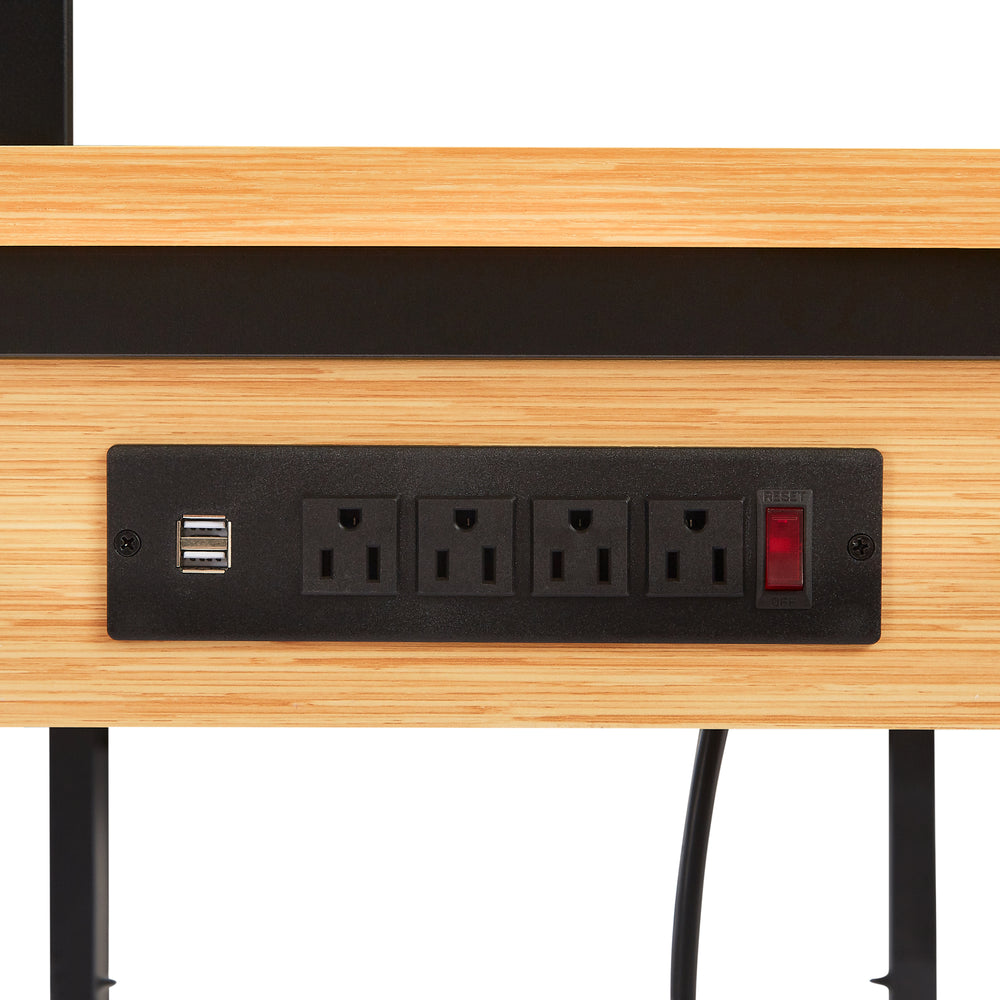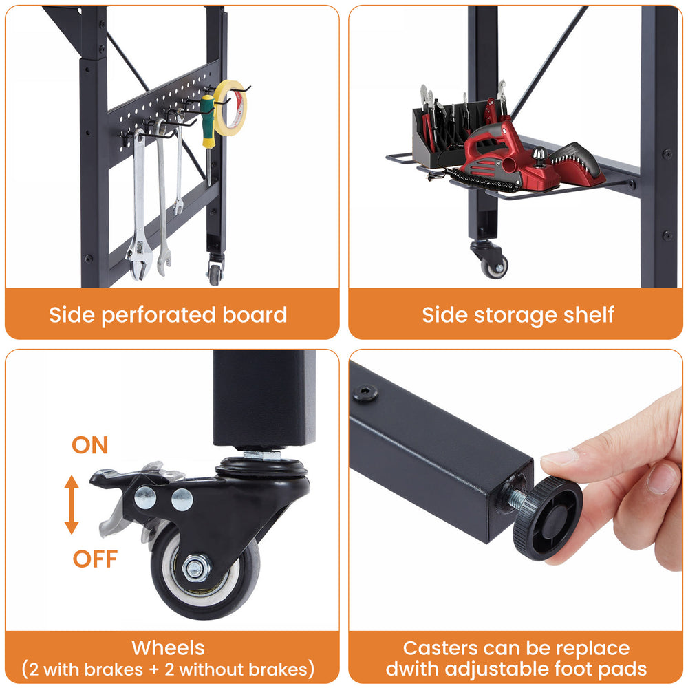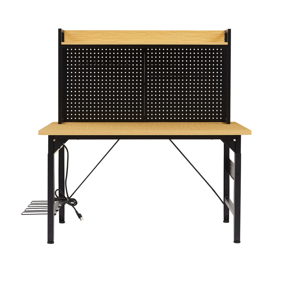 48'' Adjustable Wooden Workbench with Pegboard and Wheels with AC/USB Outlet Hooks Shelf Heavy Duty 1600 lb. Capacity