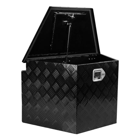 26 Inch Truck Box Aluminum Stripes Plated Tool Box with Lock and Keys Black 26.2"x13.2"x12"