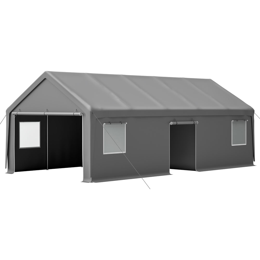 - ✅【Upgraded Dual Roll-Up Doors + Side Door】Equipped with two convenient roll-up doors on the front and back for easy drive-through access, plus a separate side door for quick entry. Removable walls and windows allow flexible ventilation and open-side configurations.