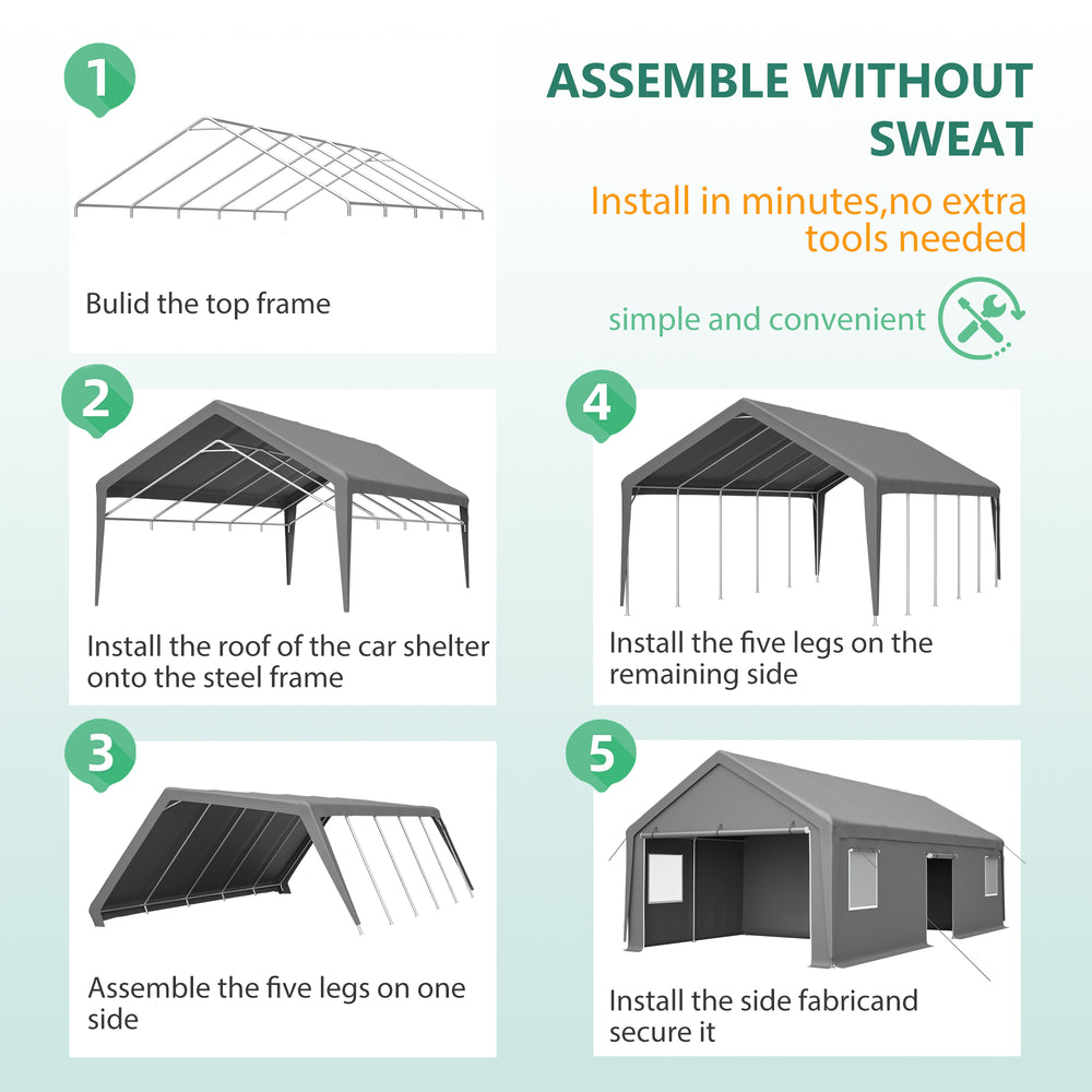 - ✅【Spacious 13x26 FT Portable Shelter】This heavy-duty carport canopy offers generous protection for vehicles, boats, cargo, and equipment. Features fully removable sidewalls and doors for versatile use—ideal for events, storage, workshops, markets, and outdoor gatherings.