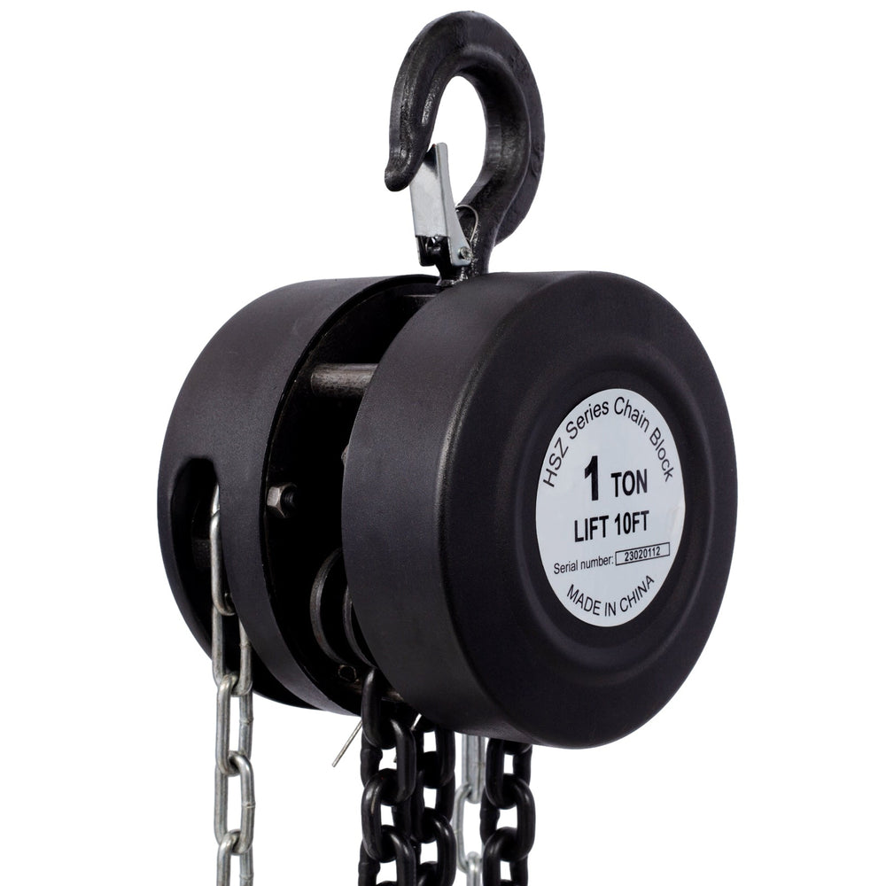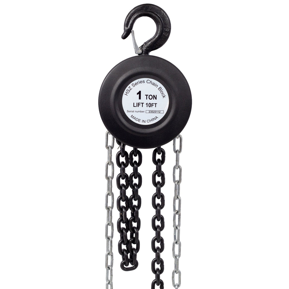 Chain Hoist 2200lbs 1T Capacity 10ft with 2 Heavy Duty Hooks Manual Steel Construction--Black
