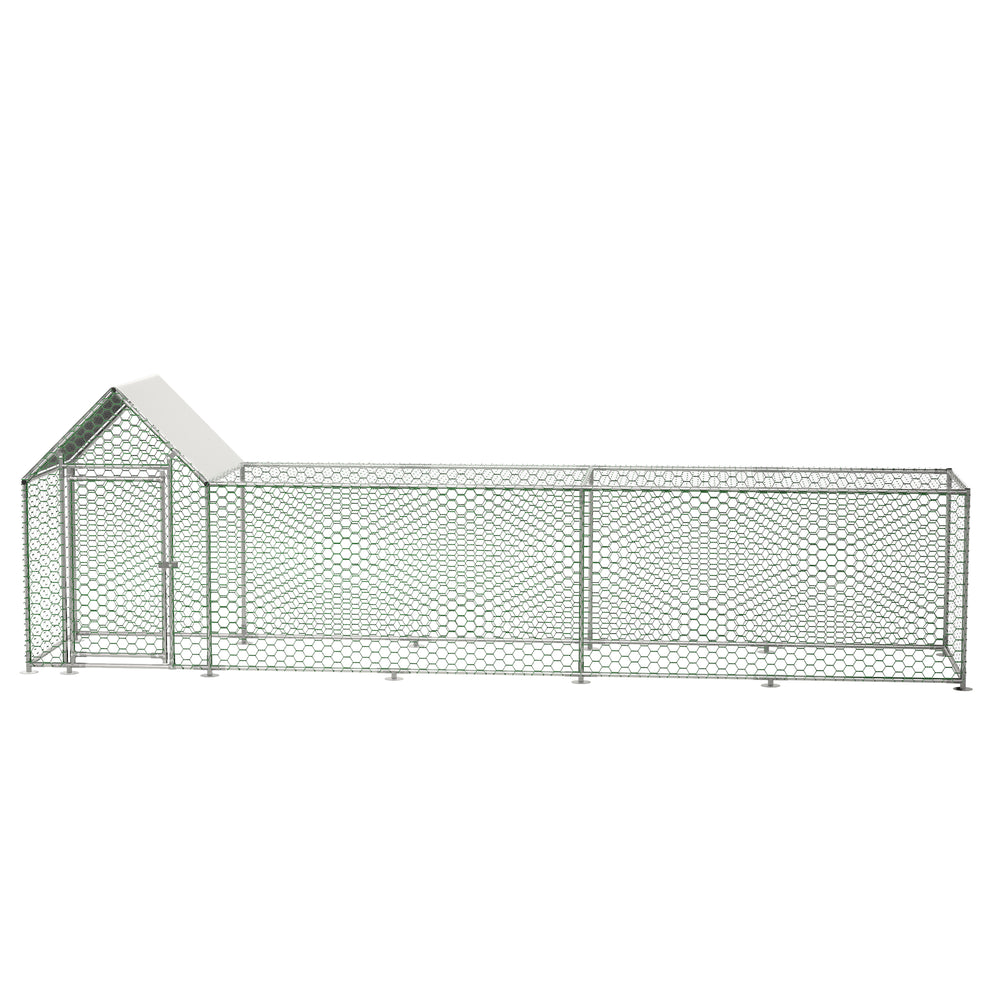 - Durable Construction:Made of a strong steel frame and thick PVC coated wire mesh, our large metal chicken coop is solid enough to withstand long-term outdoor use and keep the chicken safe from predators. Besides, the frame and wire mesh can protect the hen run house from rust and wear, which in return, will provide the animals and owner with a clean living environment.