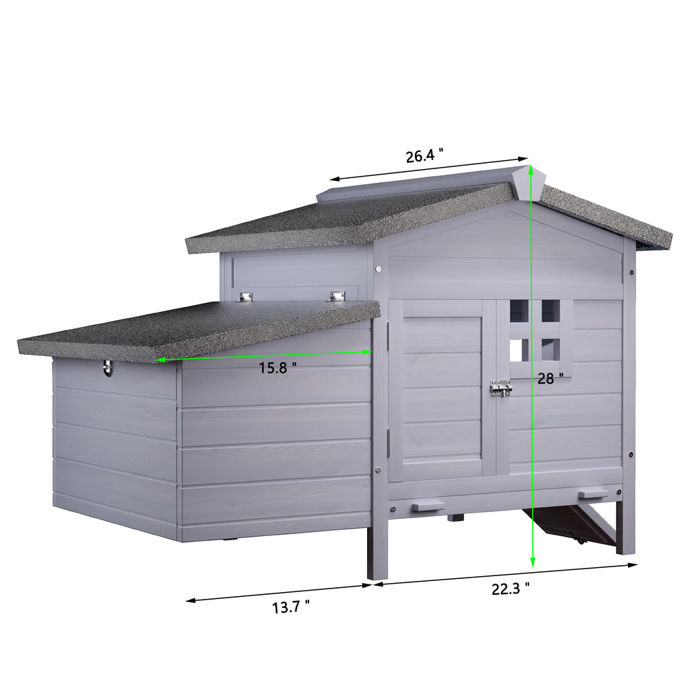 - All-Weather Protection with Asphalt Roof:Equipped with a durable asphalt roof, the coop effectively shields your flock from rain, snow, and harsh sunlight.