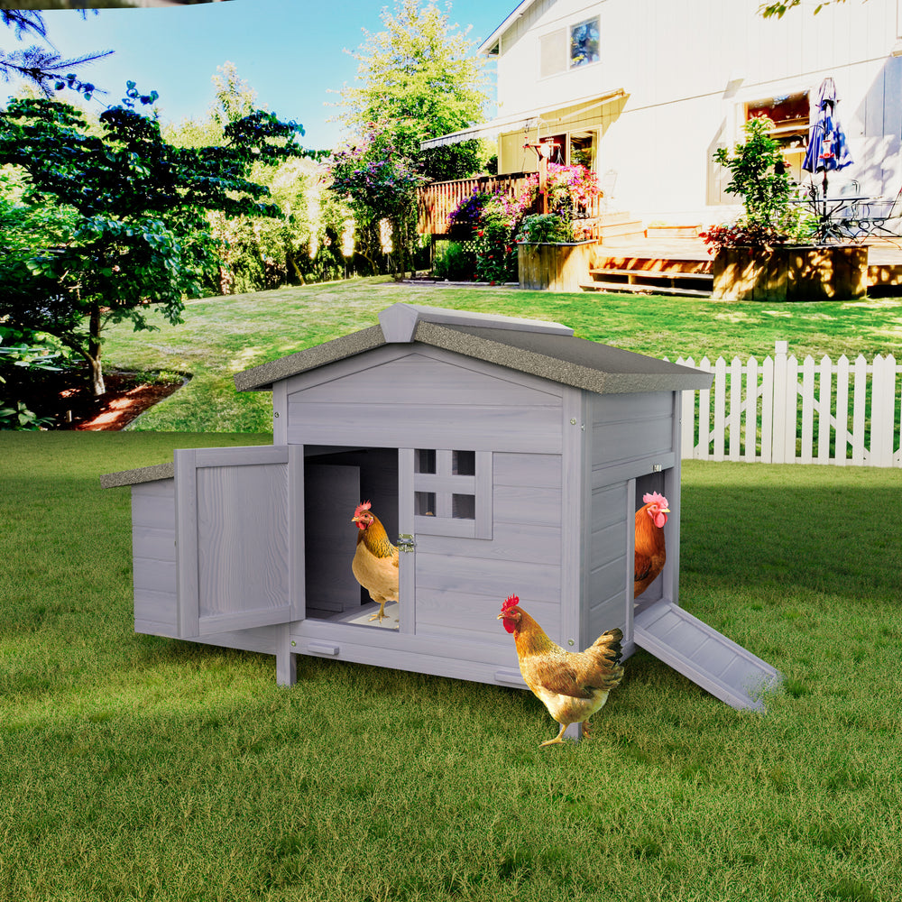 Outdoor Free-Range Wooden Chicken Coop with Asphalt Roof Leak-Proof Pull-Out Tray Secure Predator Defense