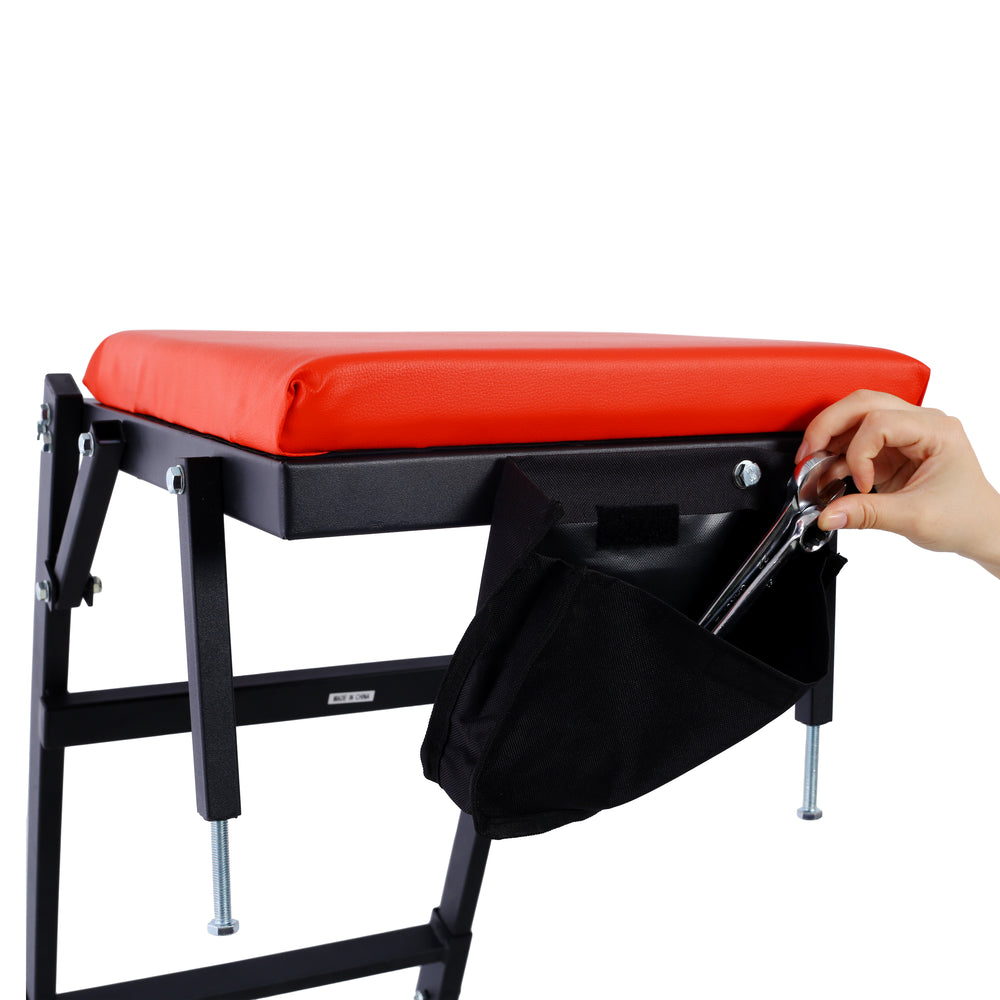 - Enhanced Comfort:With a 2-inch thick, 15 3/4x15 3/4 inch wide cushion made from ethylene-based material, this creeper ensures comfort during prolonged maintenance tasks. The wide, padded surface reduces fatigue, making it perfect for extended periods of work. A convenient tool pouch is also included, allowing you to keep your tools within easy reach and organized.