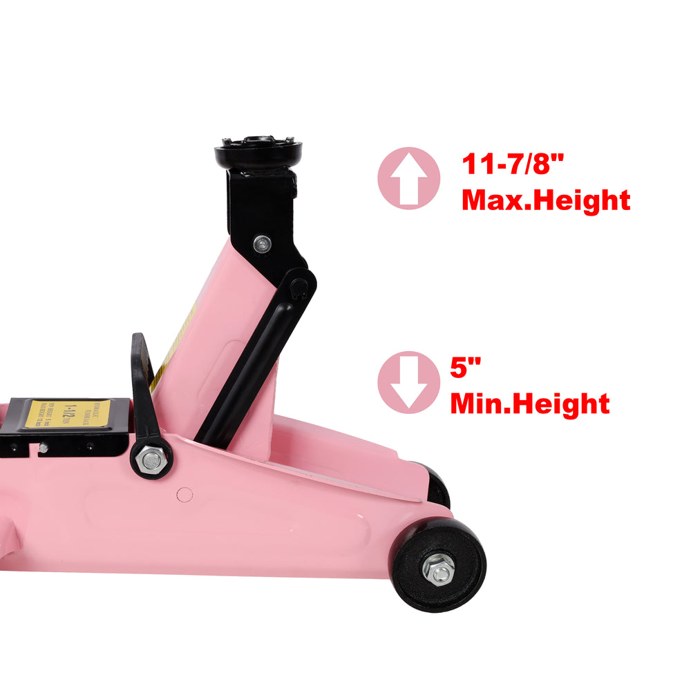 1.5 Ton Low Profile Hydraulic Floor Jack Lifting Range 5"-11.8" with Plastic Case--Pink