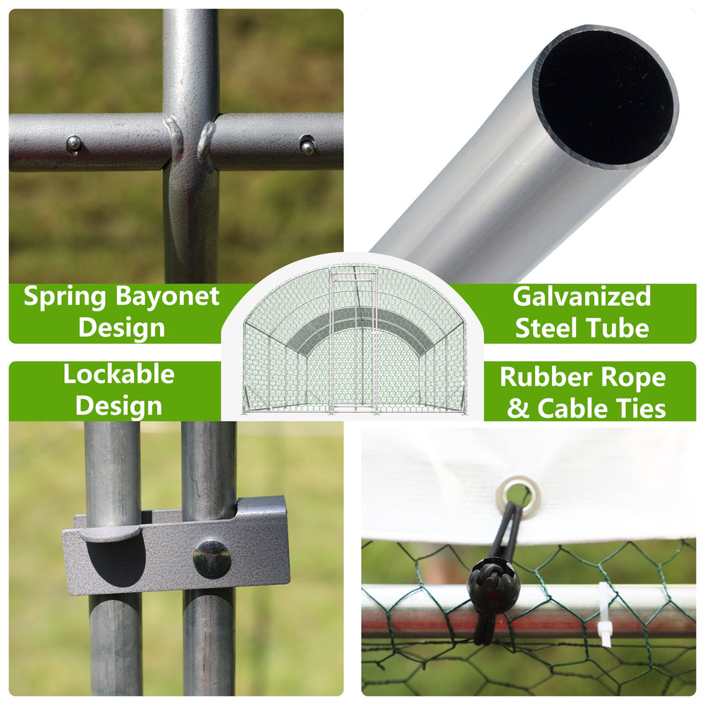 26'x9'x6' Large Metal Walk-in Chicken Coop with Waterproof Cover