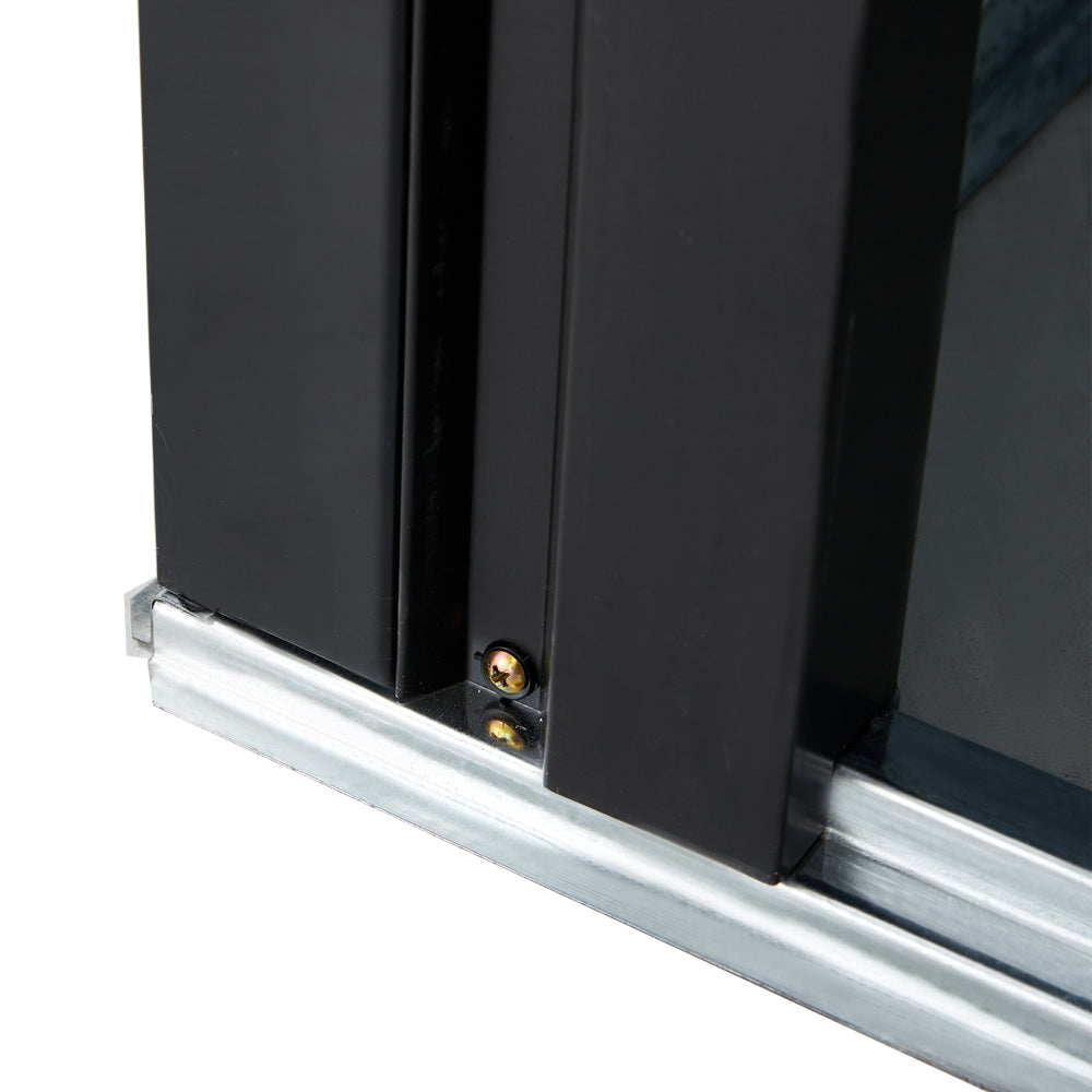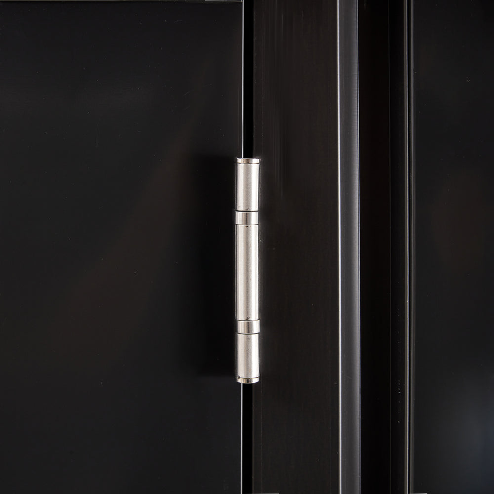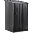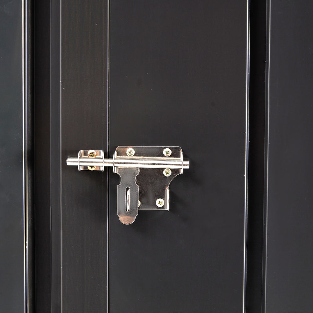 • DURABLE AND WEATHER-RESISTANT: Our outdoor storage tool shed is designed with a sloping roof for quick drainage, effectively preventing rainwater from accumulating and causing rust. Made with UV and moisture-resistant materials, this storage shed offers a protected and safe environment for your valuable tools and equipment. Its sleek black tones and clean lines seamlessly blend into any yard or patio, adding an attractive architectural element to your outdoor space.
