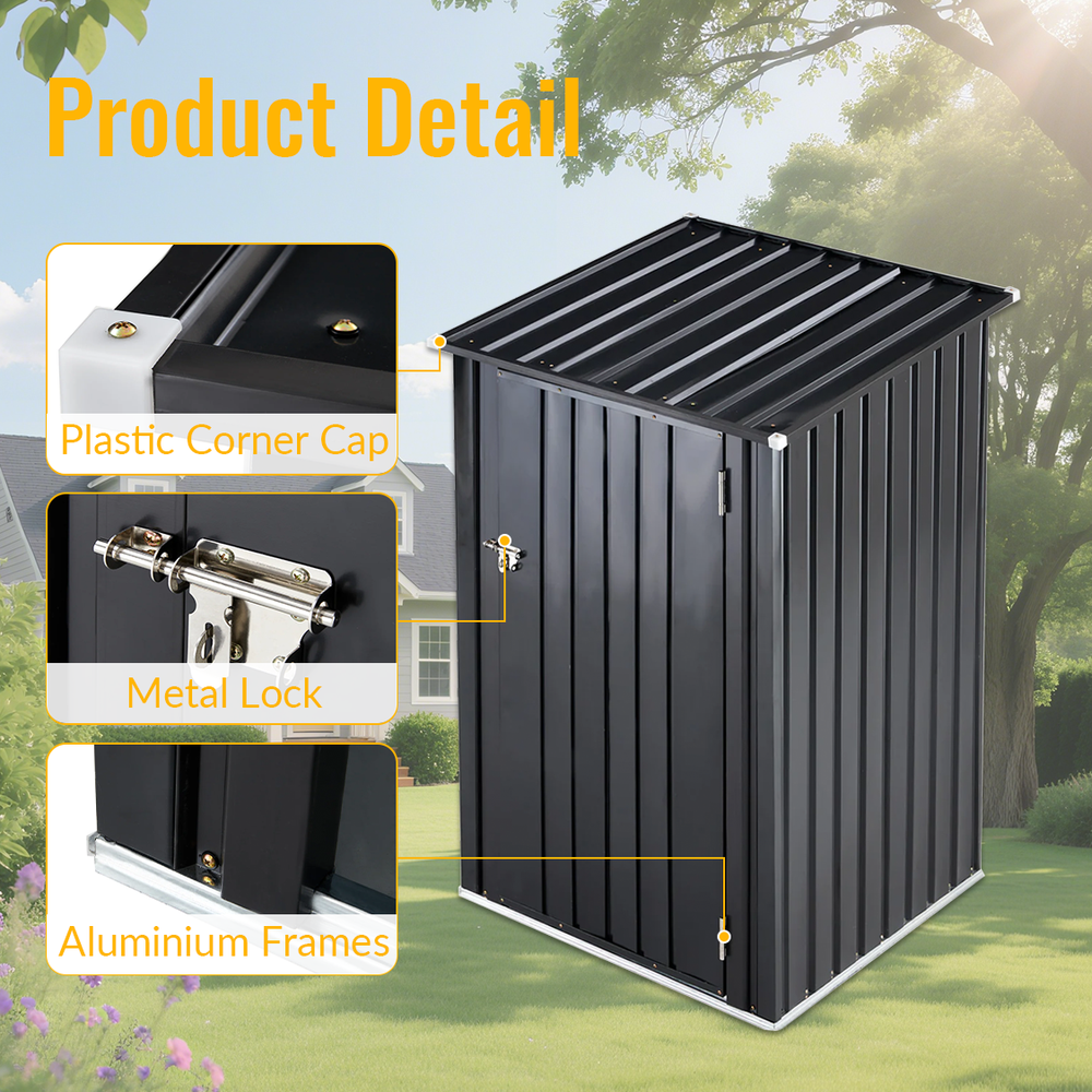 3 x 3 FT Outdoor Storage Shed with Single Lockable Door Metal Steel--Dark Gray