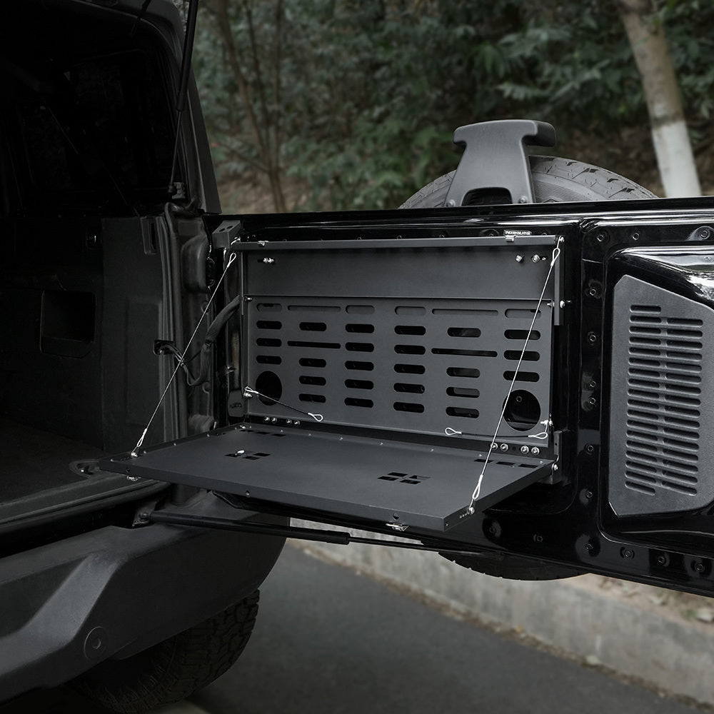 Tailgate Table Molle Panel for Ford Bronco 2021-2024 2-Tier Foldable Rear Storage Cargo Rack Shelf Camping Desk