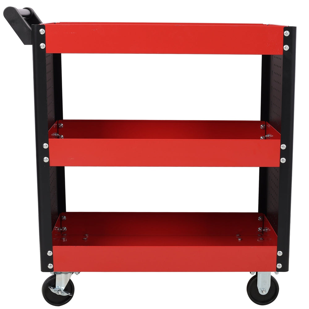 3 Tier Rolling Tool Cart on Wheels with Pegboard Heavy Duty Utility--Red