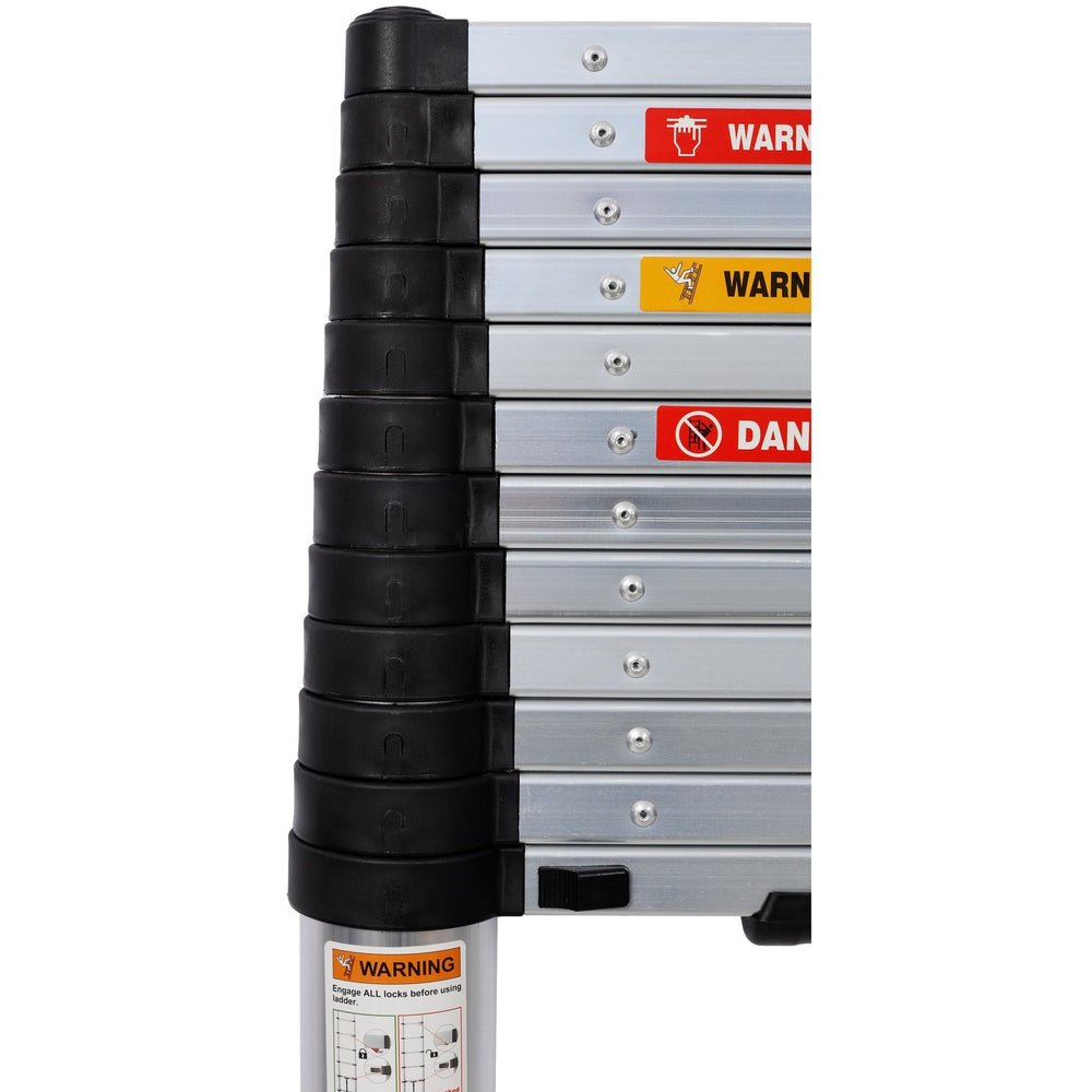 12.5FT Telescopic Ladder Aluminum Ladder with Non-Slip Feet With Stabilizer Portable Extension Ladder for Household and Outdoor Working 330lbs Capacity--Silver