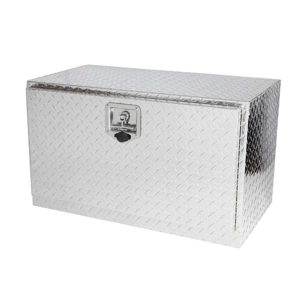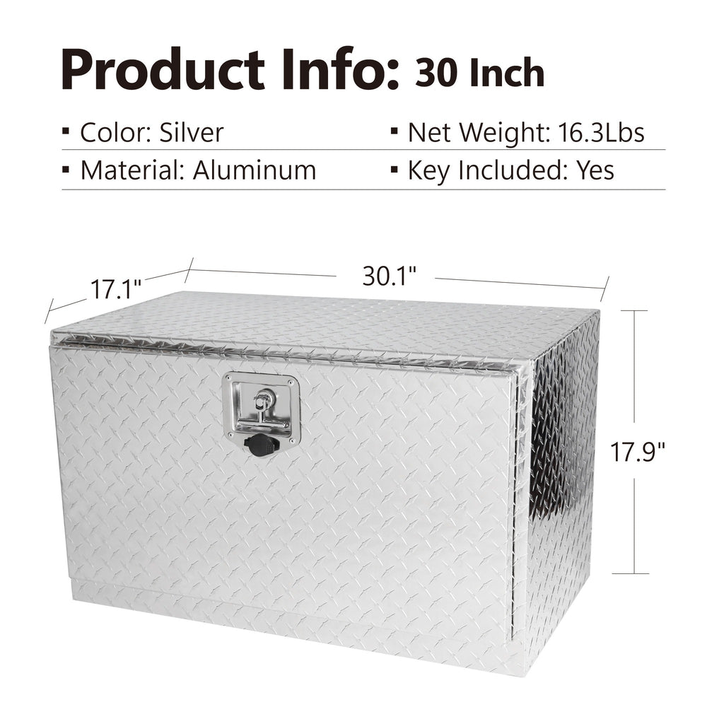 30 Inch Aluminum Stripes Plated Tool Box Pick Up Truck Bed RV Trailer Toolbox Waterproof Square Storage Organizer with Lock and Keys 30"×17"×18"