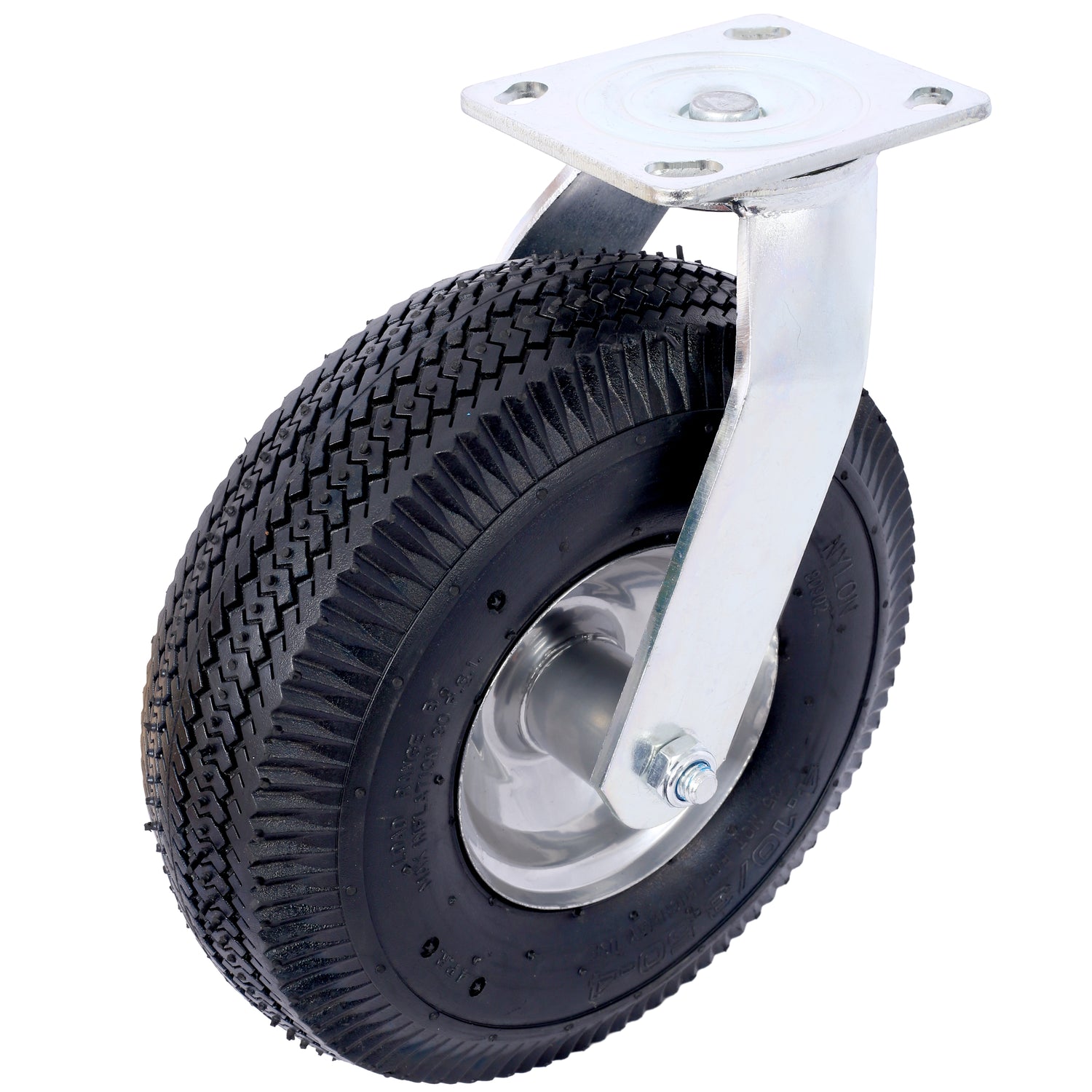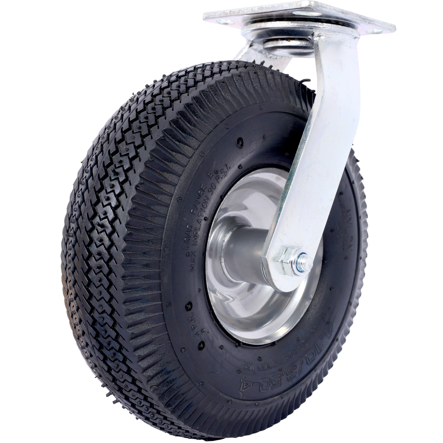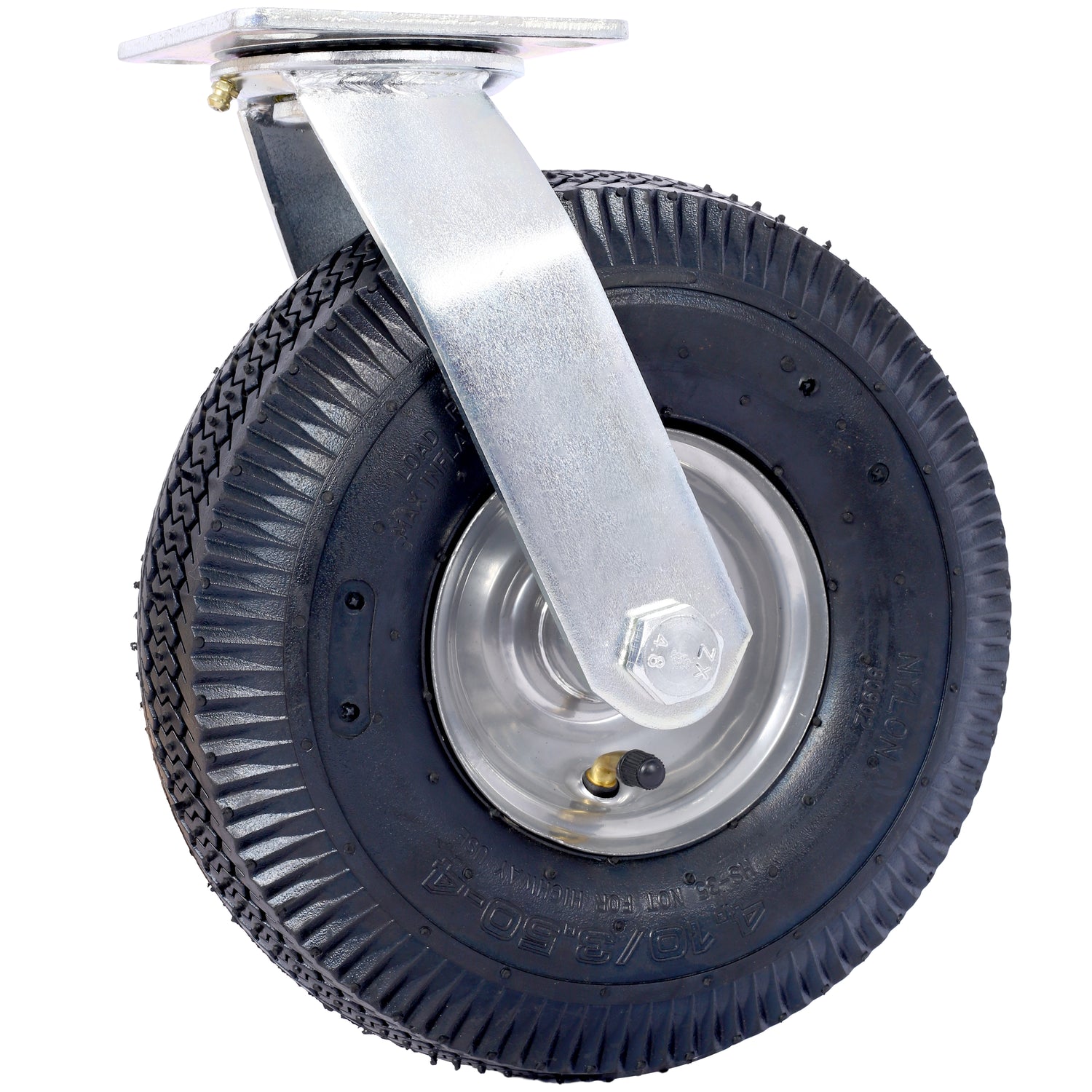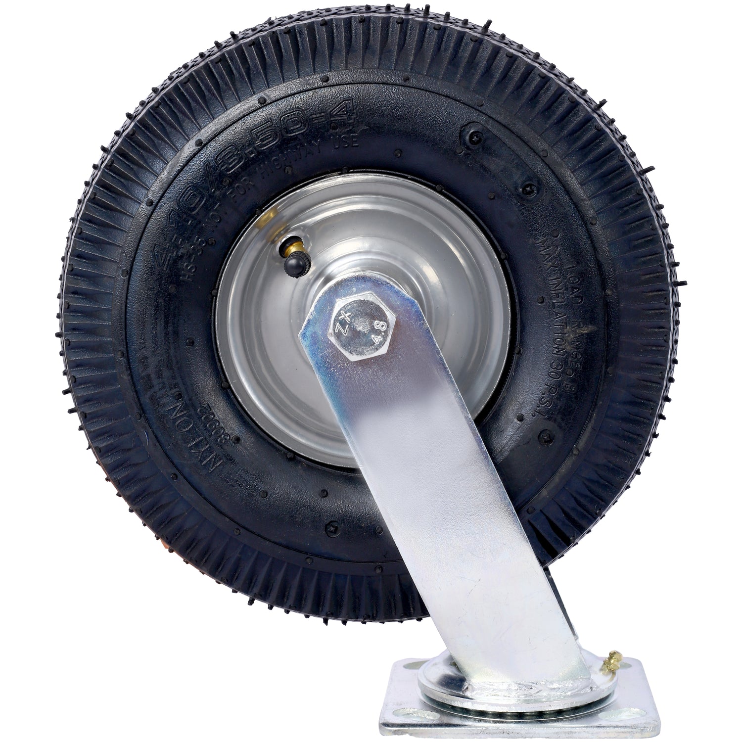 • High Load Capacity: With a 300-lb load capacity and a swivel plate, this pneumatic caster is designed to provide reliable support and maneuverability for a range of manual applications at low speeds, ensuring efficient and effective use.