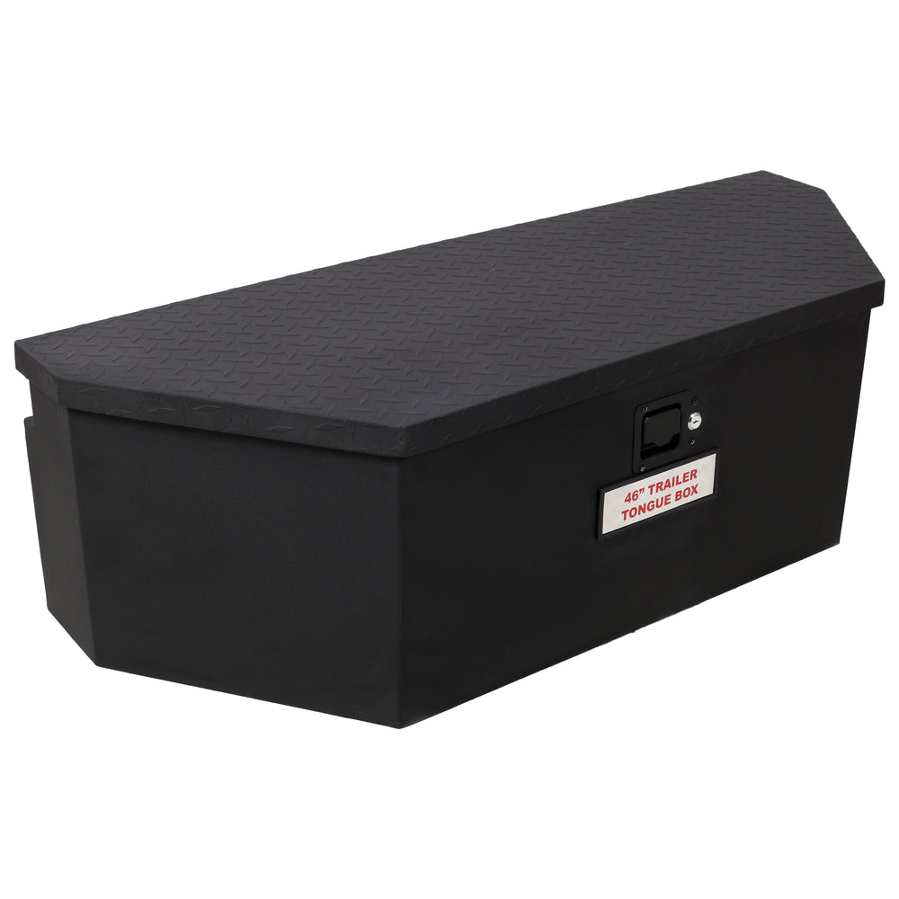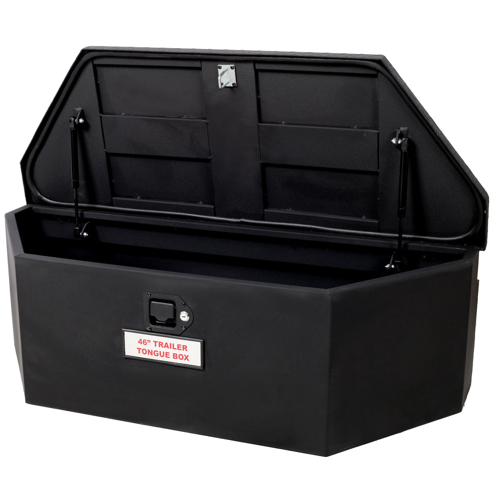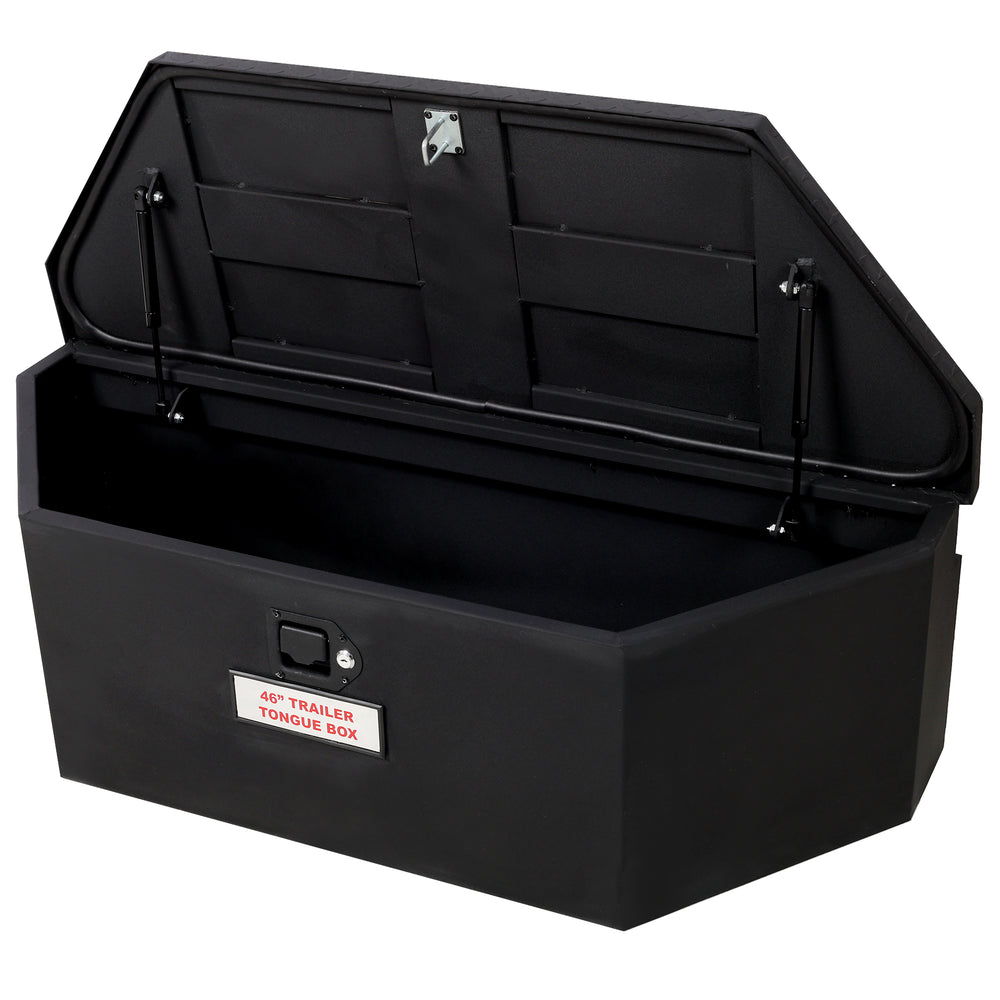 46“X18”X14.5“ Trailer Tongue Box with Lock and Keys Heavy Duty Steel 6.7 CUFT Capacity--Black