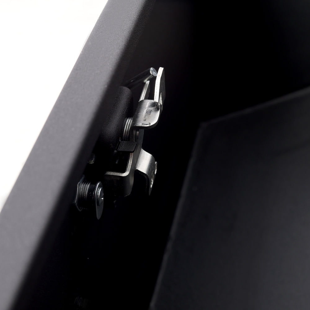 - Convenient 1-handed close thanks to the dual dampened gas shocks and paddle style handle. Security features include the lockable design and the tamper-resistant double-wall lid.