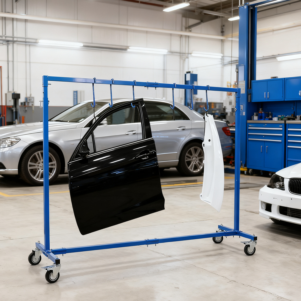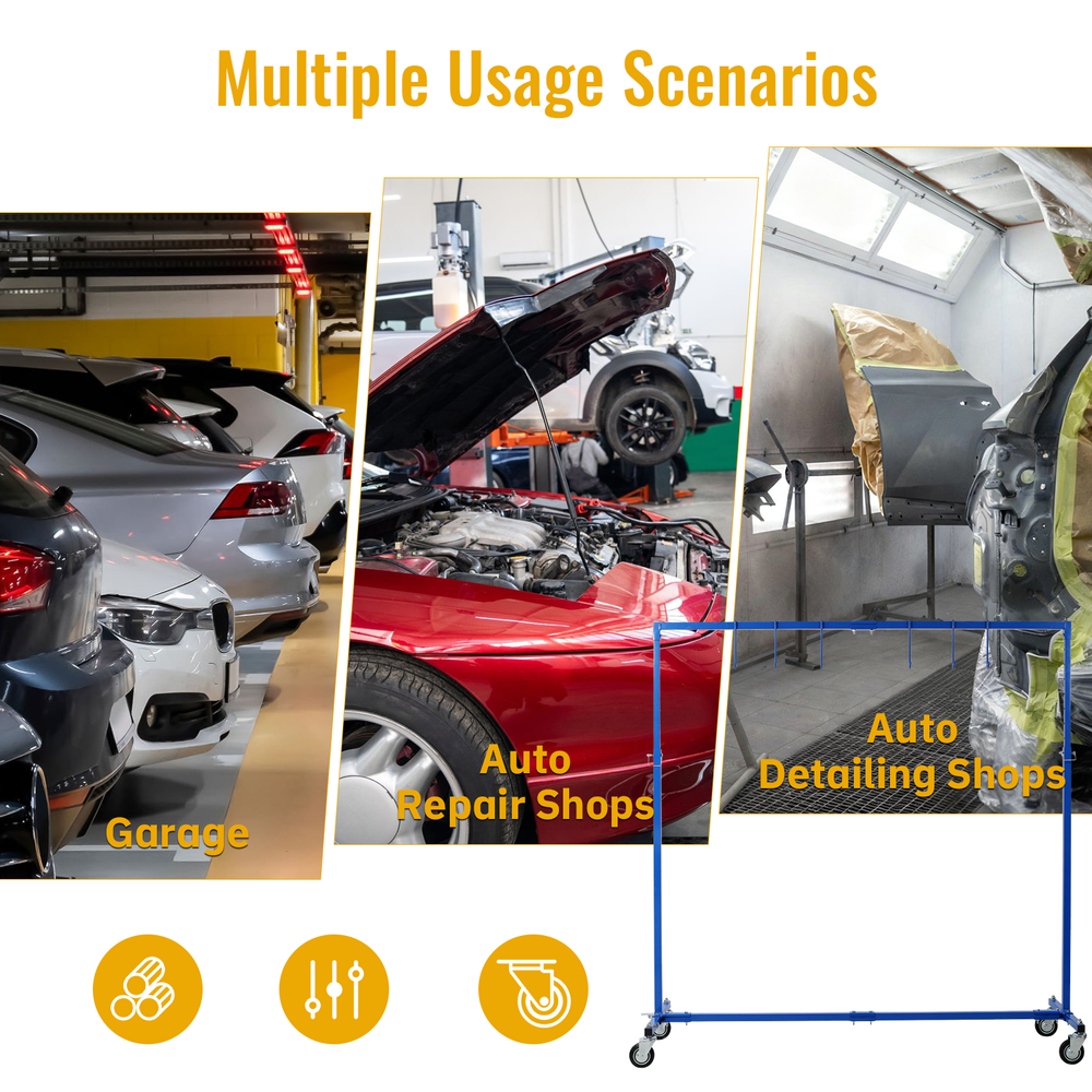 - Engineered for automotive applications, this portable painting rack securely holds auto body equipment, providing a versatile solution for painting and assembly tasks.The auto body hanger paint rack supports up to 3000 lbs, ensuring reliable performance for heavy components.Designed to accommodate various auto parts: car doors, hoods, fenders, bumpers, and tailgates—ideal for professional body shops and DIY enthusiast.