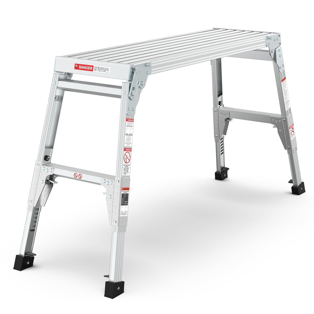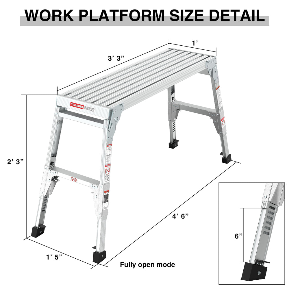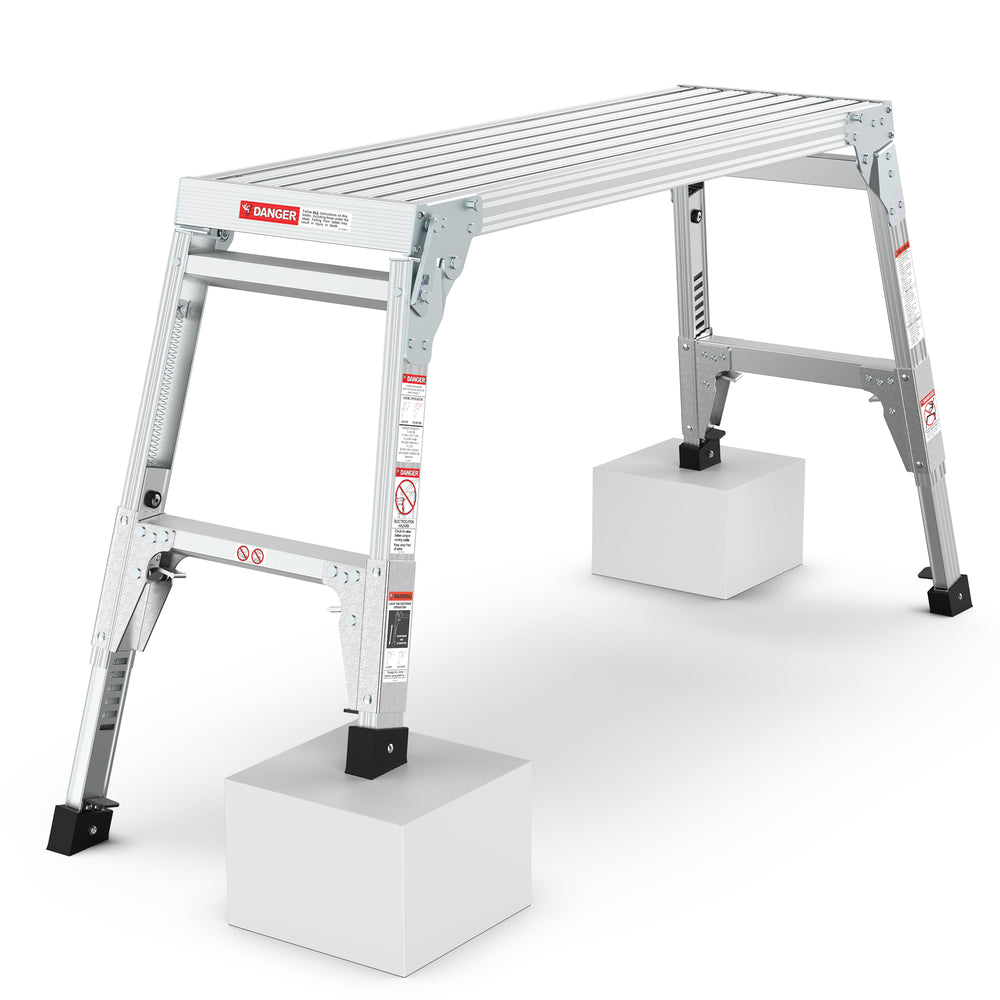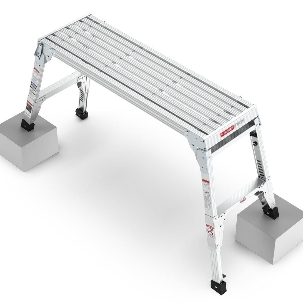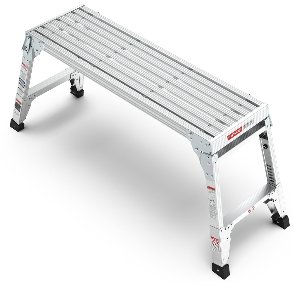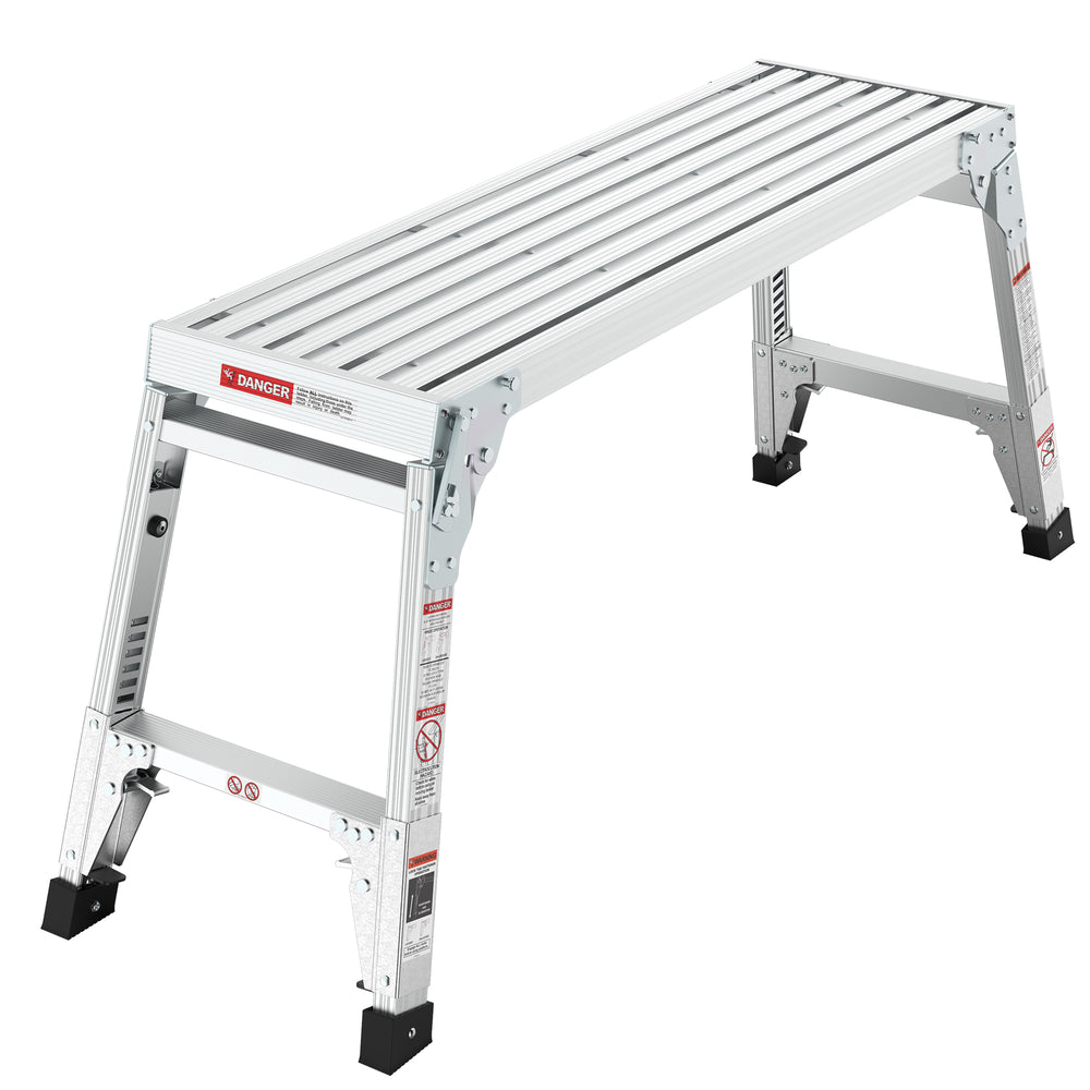 Aluminum Work Platform Large Size Step Stool Folding Portable Bench 40" Width Telescopic Feet 22" -27.5" Height Adjustable--Grey
