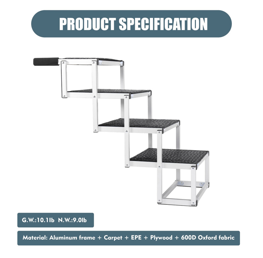 - 【Maximum Safety with Non-Slip Tech】Features paw-print textured surfaces on every step for superior traction. Integrated safety carabiners lock securely onto vehicle edges, creating a rock-solid anchor that prevents shifts – critical for senior dogs or pets with joint issues.
