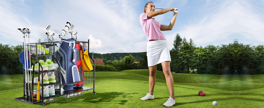 - Extra-Large Golf Storage Rack: Designed to hold up to 3 golf bags, this organizer features 3-tier shoe racks and 4 removable hooks, offering a spacious solution to neatly store all your golfing essentials in one organized spot.