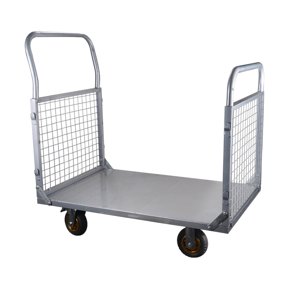 - 【Removable and Foldable Fence 】 A simple installation method can obtain a platform truck for 4 purposes. This push dolly can do it all, whether you’re moving household items, wood planks, or luggage! A flat cart is perfect for moving bulky, large, heavy things