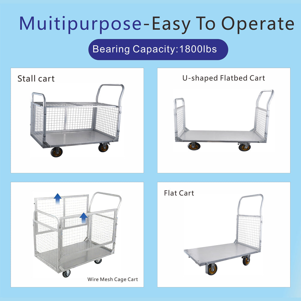 Platform Truck with Cage 6-in-1 Platform Hand Truck with 6" Casters Removable Side Swivel Wheel 1800lbs Capacity