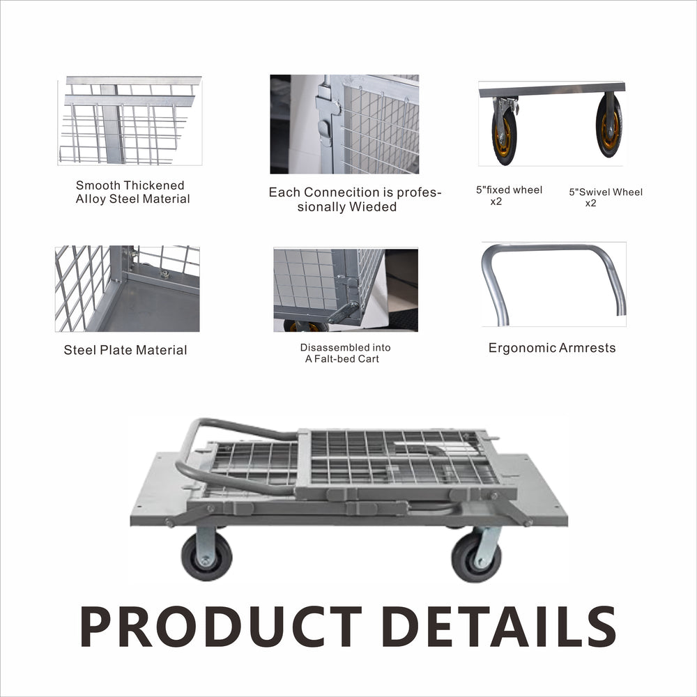 - 【1800 lbs Carrying Capacity】The flat Cart is a flexible, easy-to-use solution for transporting heavy loads, with a unique folding design and up to 1800 lbs capacity. With its robust construction and durable materials, the Folding Mesh Cage Cart is a reliable and efficient solution for your goods transport needs. Its folding design allows easy storage and transportation, while its mesh cage design provides excellent visibility and ventilation