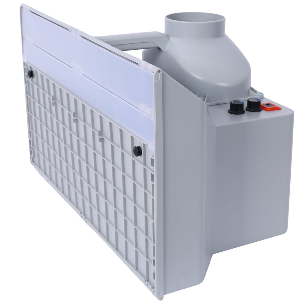 • DUAL FANS FOR EFFICIENT VENTILATION – The dual fans deliver a wind speed of up to 9 m/s and an airflow of 8 cubic meters per minute. You can easily adjust the fan speed using the control knob. The extendable hose efficiently removes harmful fumes, while the filters capture paint particles, ensuring smooth fan operation.