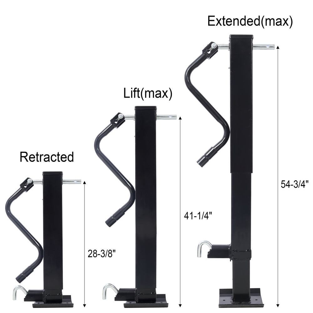 - Reliable Stability and Versatility: Designed with a footpad for added stability, this jack provides a secure foundation for your trailer. With a lifting capacity of 12,000 lbs. and an extended length of 54 3/4", it supports a wide range of trailer sizes and weights, making it perfect for various towing applications.