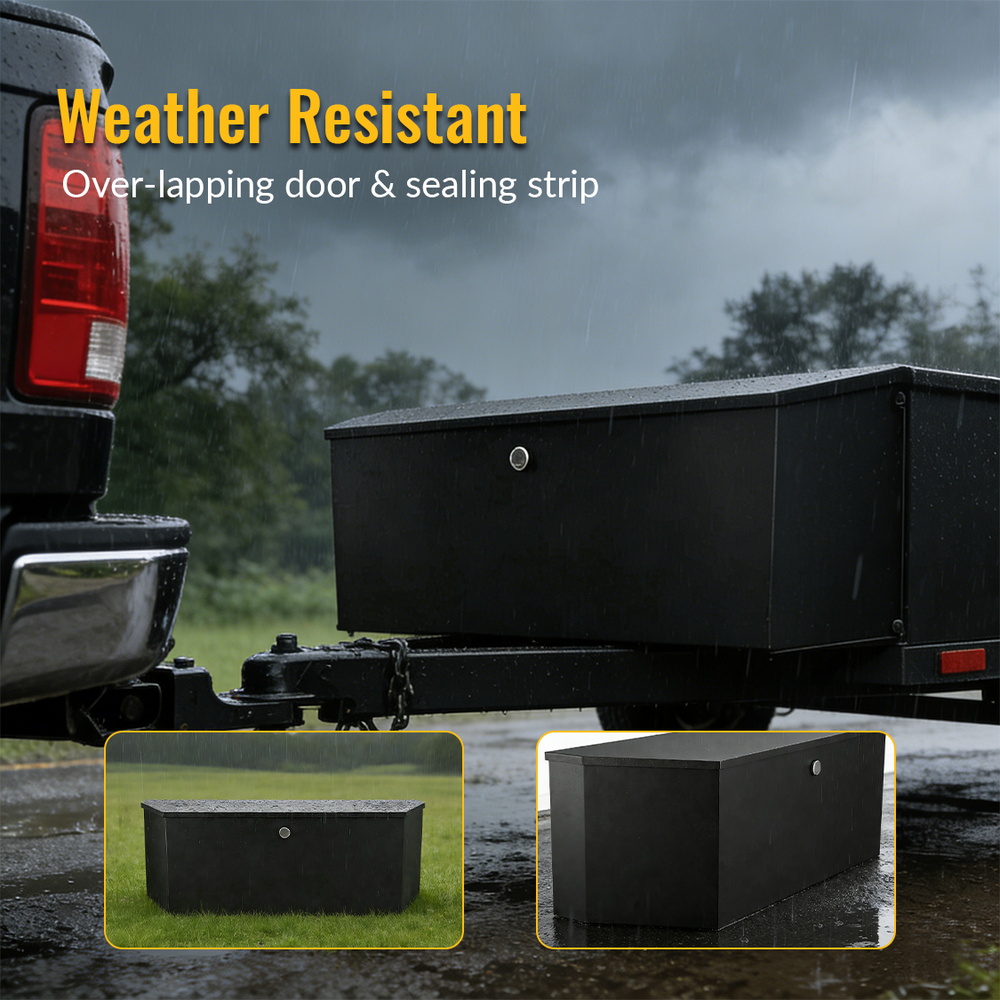 - Wetterbeständig: Erleben Sie ultimativen Schutz vor Regen und Schnee. Unsere Anhängerdeichselbox verfügt über eine überlappende Tür und einen extrabreiten Dichtungsstreifen, der eine dichte Abdichtung gewährleistet und vor eindringendem Wasser schützt. Halten Sie Ihre Sachen trocken, sauber und gut geschützt, auch bei rauen Wetterbedingungen.
