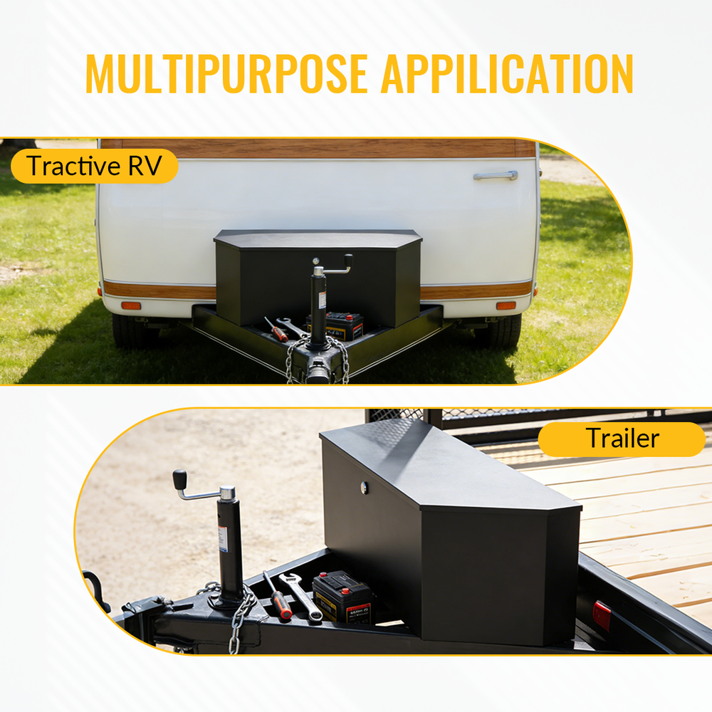 - Schluss mit Werkzeugchaos: Unsere Anhängerdeichselbox bietet mit 914 × 305 × 305 mm einen geräumigen Stauraum für Batterien, Werkzeuge, Outdoor-Ausrüstung und mehr. Schluss mit dem frustrierenden Suchen und Suchen im Notfall.