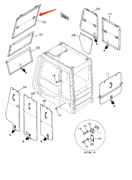 Frame Front Window Fits Hitachi EX200, EX220, EX270, EX300, EX400, EX700 Excavator