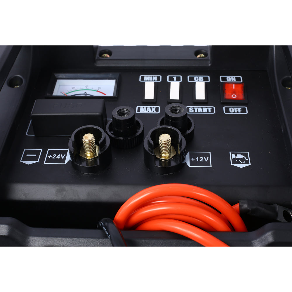 12V & 24V Wheeled Battery Charger Fully Automotive Battery Maintainer Jump Starter Dial Display Telescopic Handle