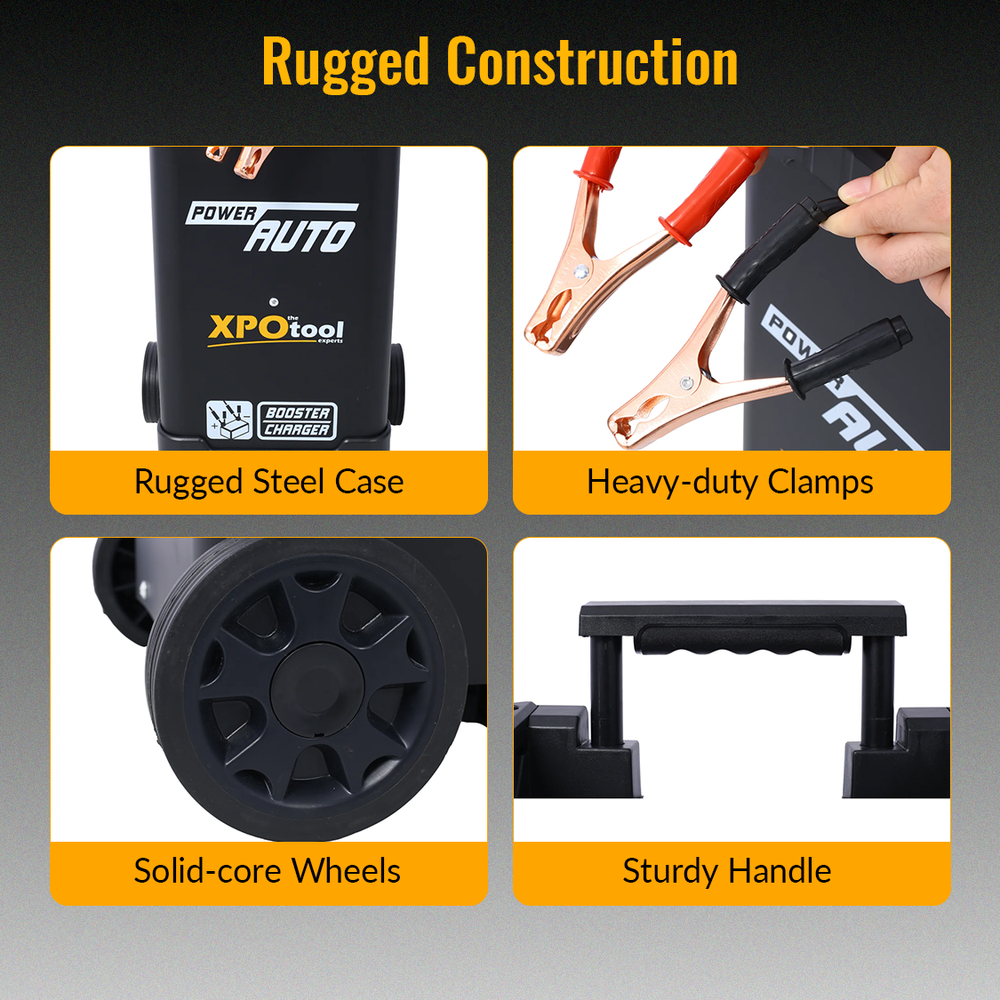 • Quick Hookup: With front-mounted, 6-foot booster cables and a 6-foot power cable, users benefit from a total 12-foot reach, simplifying the process of attaching the unit to hard-to-reach batteries.