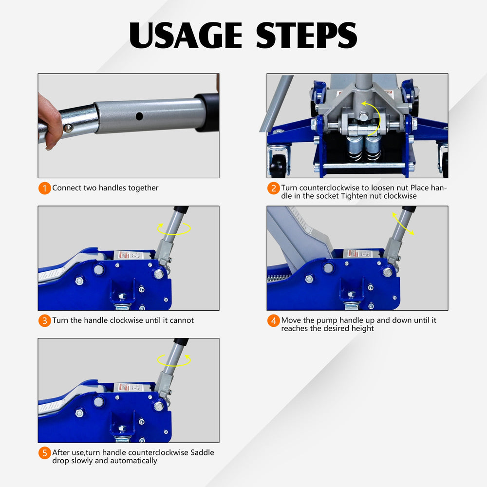 - With 5ton/11,000 lb strong loading capacity, The floor jack can help you raise your car for whatever reason. Replace a tire, change oil or maintain the brake, whether you are a professional, car enthusiast, or weekend DIYer to take matters into your own hands!