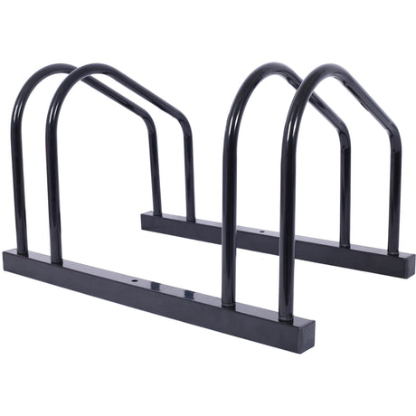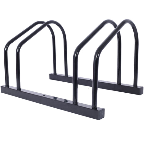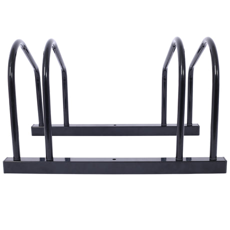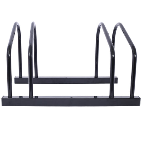 2 Bikes Floor Bike Stand Parking Rack 22-28" Wheel Max Tire Width 2.15" Black Painted