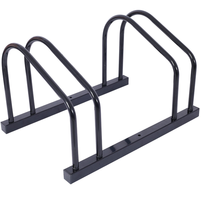 2 Bikes Floor Bike Stand Parking Rack 22-28" Wheel Max Tire Width 2.15" Black Painted