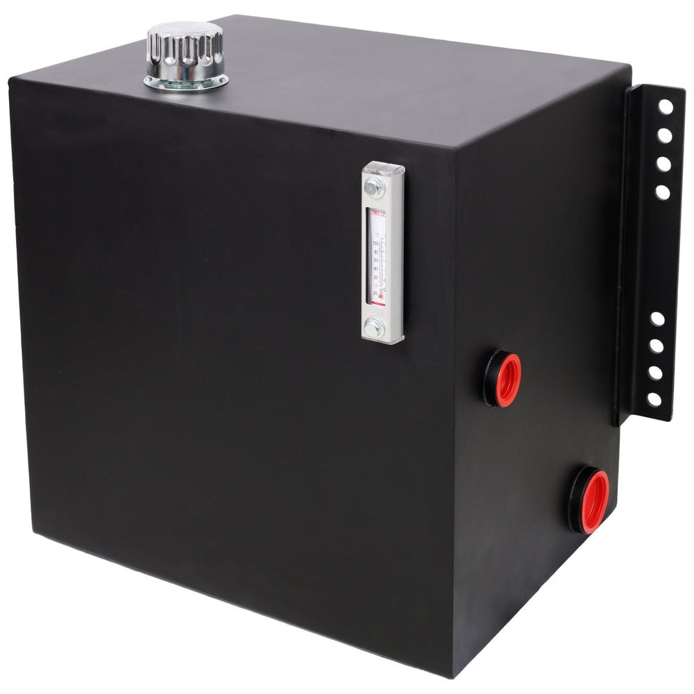 - Capacidad de 25 galones, construcción robusta de acero calibre 12. Este depósito cuenta con un puerto de succión/retorno FNPT de 2 pulgadas y un puerto de retorno FNPT de 1-1/4 pulgadas. Además, su tapa de ventilación cuenta con una malla de 3/4" para una filtración eficiente.