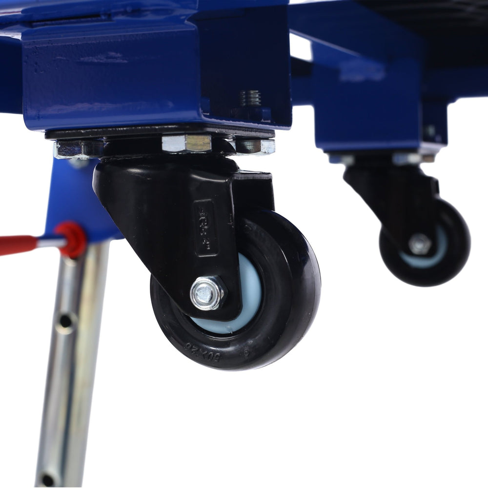 - Súper movilidad. Equipado con dos ruedas giratorias y dos ruedas antideslizantes grandes, este banco de trabajo ofrece una excelente movilidad. Plegado, puede usarse como plataforma rodante o plataforma rodante. Las ruedas giratorias facilitan la maniobrabilidad, mientras que las ruedas antideslizantes grandes garantizan un deslizamiento suave sobre terrenos irregulares, facilitando el paso por baches y hoyos.