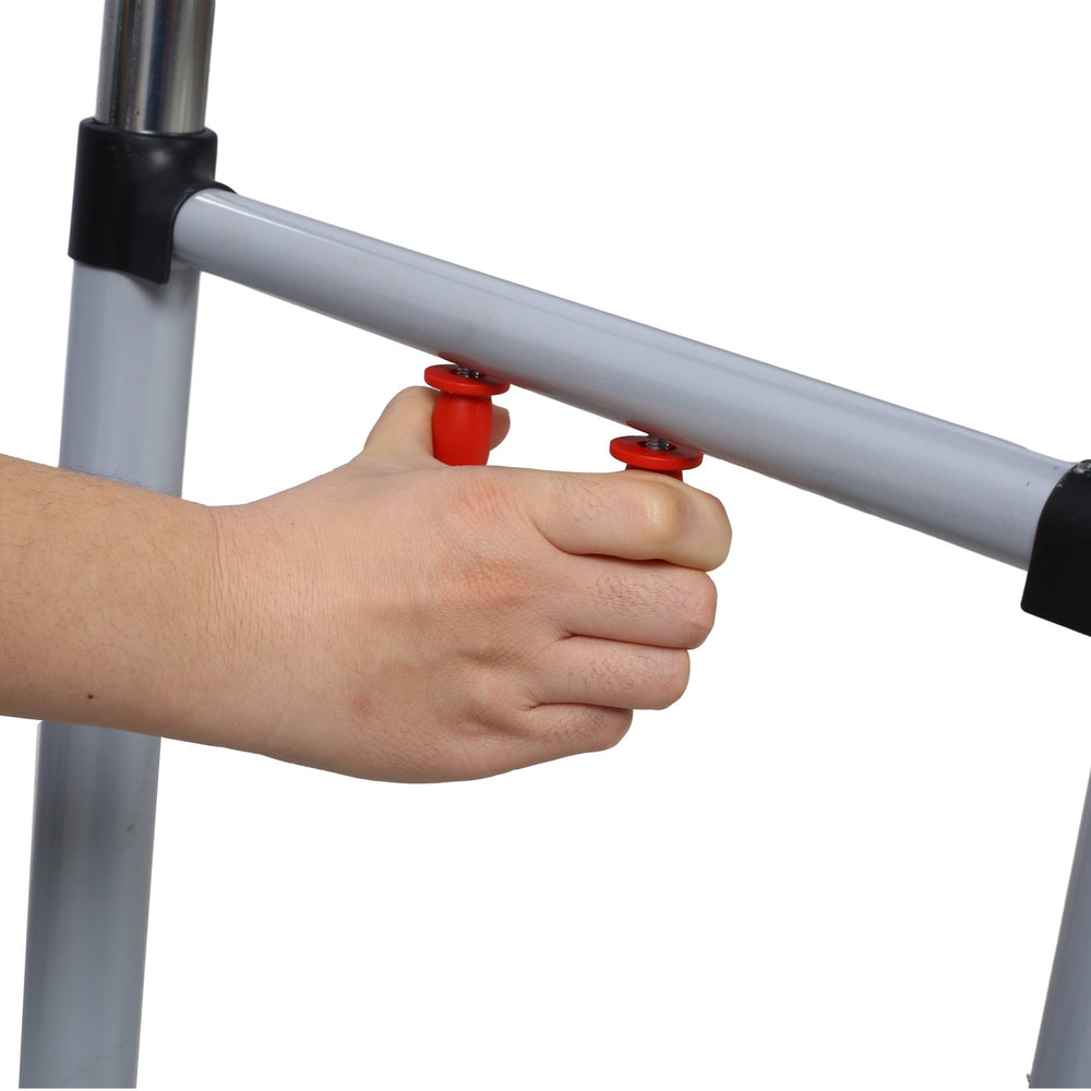 - Patas plegables y telescópicas. Con un diseño de plegado rápido, las patas de este banco de trabajo se pliegan fácilmente dentro de la mesa, transformándola en una plataforma móvil. Las patas telescópicas ofrecen tres niveles de altura ajustables, lo que garantiza versatilidad para diversas tareas. Sus grandes patas antideslizantes proporcionan una base amplia y ultraestable, manteniendo el banco de trabajo firmemente en su lugar.