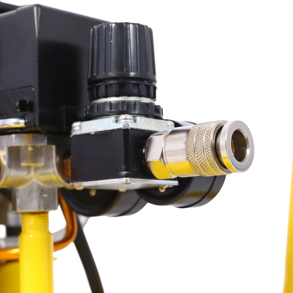 Compresor de aire silencioso de 2.5 hp 13 galones Tienda eléctrica sin aceite sin aceite Ligero con ruedas Nivel de ruido de 70 dba con válvula de drenaje automática amarillo