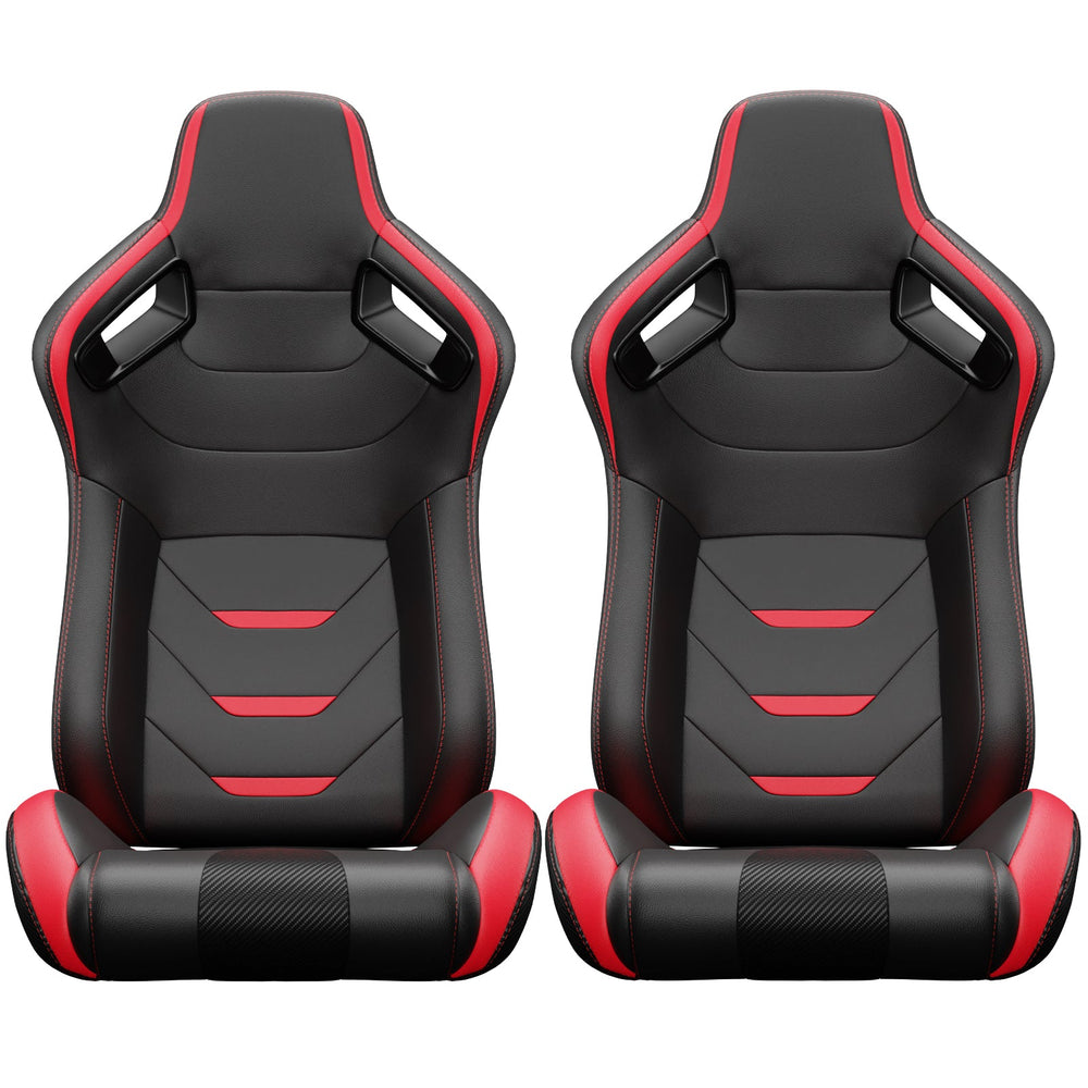 2pcs asientos de carreras universales de cubo rojo puntada roja de cuero rojo de cuero reclinable de cuero de cuero con deslizador de ajustador (sin incluir el soporte del asiento) is backordered and will ship as soon as it is back in stock.