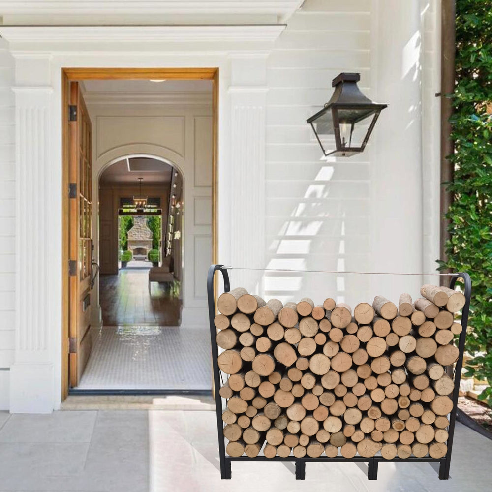 Artibear Firewood Rack Stand de 4.1 pies Soporte de registros pesados de servicio pesado-Negro mate