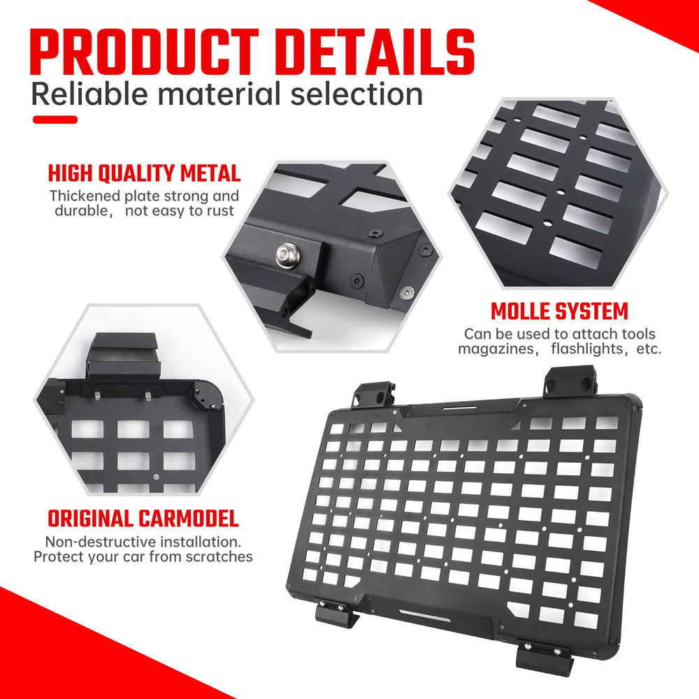 - Diseño engrosado: el diseño engrosado de este panel Molle de alta resistencia es lo suficientemente grande como para acomodar la mayoría de las herramientas todoterreno, el panel Molle cubre toda la ventana trasera, hermoso y práctico.