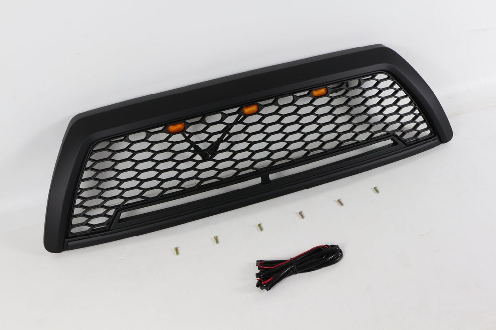 - APARIENCIA ROBUSTA: Esta rejilla superior de repuesto es una excelente manera de añadir un aspecto robusto al frontal de su camioneta. Con un diseño de panal, esta rejilla incluye tres luces LED decorativas integradas en la parte superior.