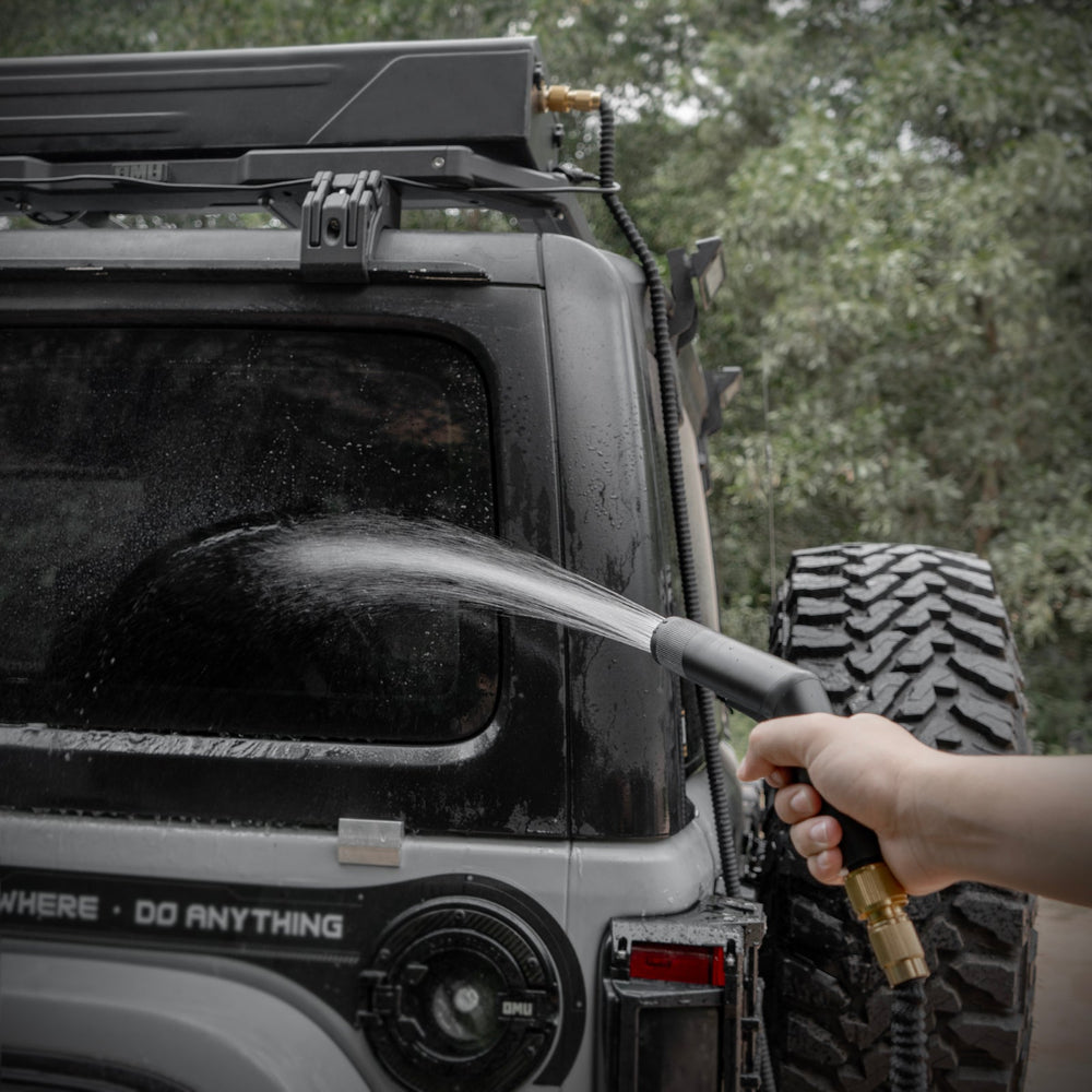 - Compatibilidad universal: Los tanques de agua presurizados se pueden instalar en todos los vehículos, portaequipajes, barras transversales, rieles de nivelación y rieles de caja de camioneta. El tanque de agua portátil se fija firmemente al portaequipajes del vehículo, lo que garantiza un almacenamiento de agua estable y confiable para acampar y ducharse.