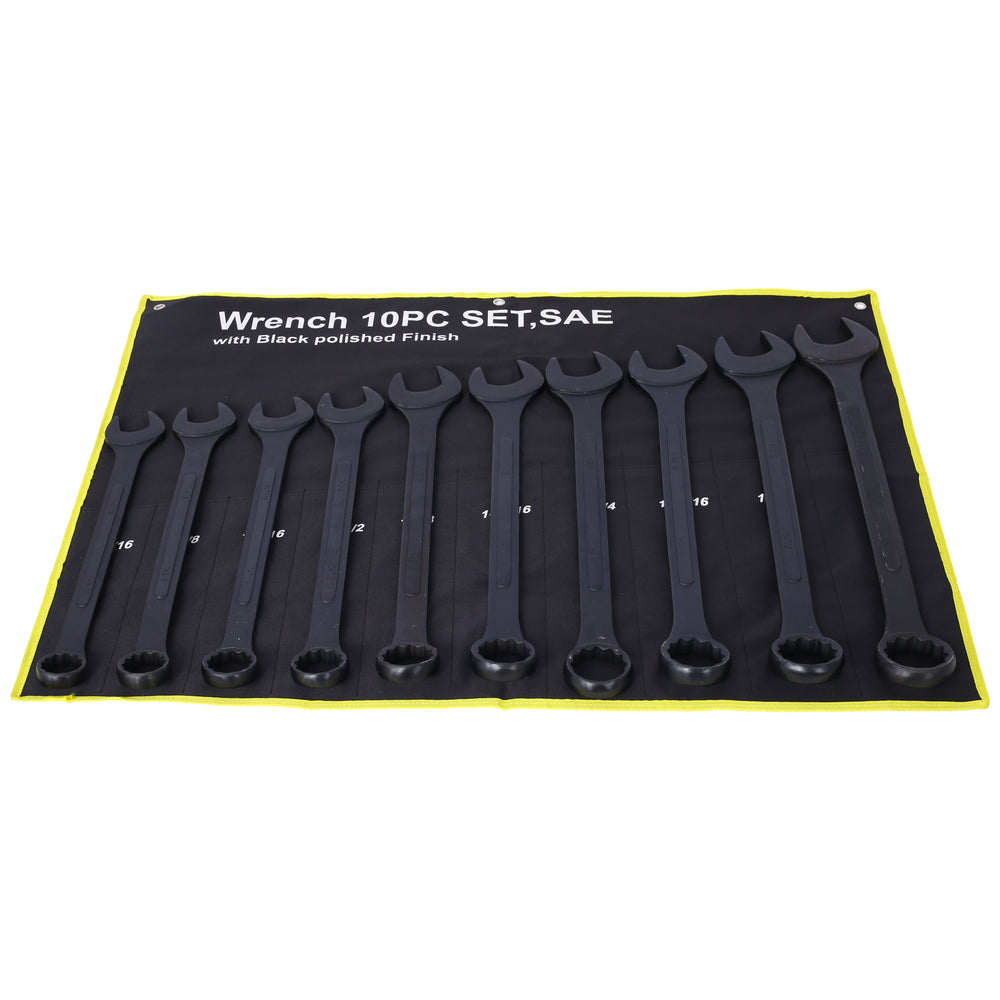 10 PCS SAE Jumbo Combination Wrench Set Extra Large Black-Oxide 1-5/16" - 2" kasama ang Pouch