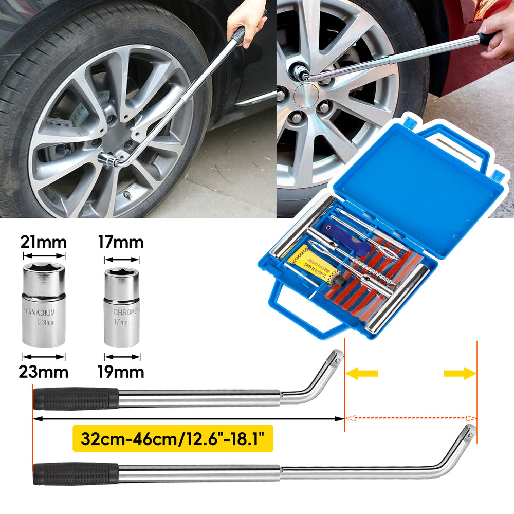 • Bandenreparatieset, er zitten veel reparatiegereedschappen in de doos, wanneer uw voertuigbanden problemen krijgen, kan hij u helpen de banden te repareren, zodat u beter kunt reizen