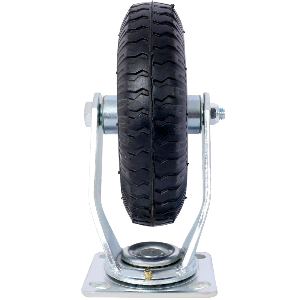- Høy lastekapasitet: Med en lastekapasitet på 220 lb og en dreibar plate, er dette pneumatiske hjulet designet for å gi pålitelig støtte og manøvrerbarhet for en rekke manuelle applikasjoner ved lave hastigheter, og sikrer effektiv og effektiv bruk.
